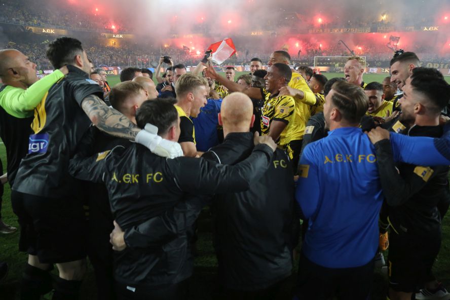 Για πρώτη φορά μετά το 2018 και για 13η συνολικά στην ιστορία της η ΑΕΚ είναι πρωταθλήτρια Ελλάδας, σφραγίζοντας τον τίτλο με το 4-0 επί του Βόλου στην OPAP Arena που ήταν κατάμεστη από νωρίς, με το πάρτι να έχει αρχίσει στη Νέα Φιλαδέλφεια από το πρωί της Κυριακής (14/5) και θα συνεχιστεί για πολλές ώρες ακόμη.