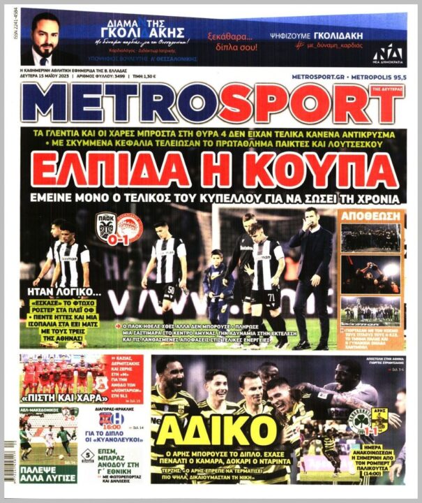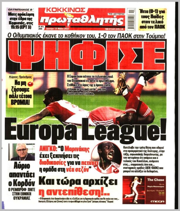 Τα αθλητικά πρωτοσέλιδα της Δευτέρας (15/5)