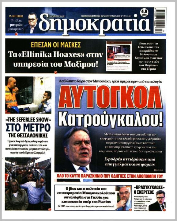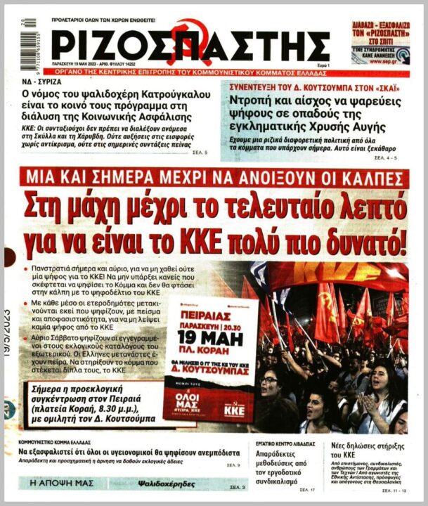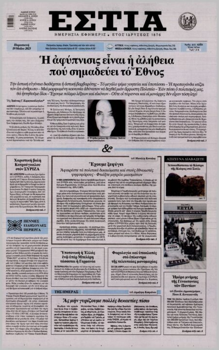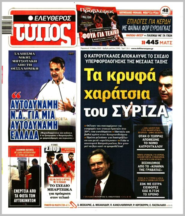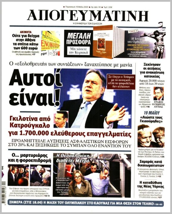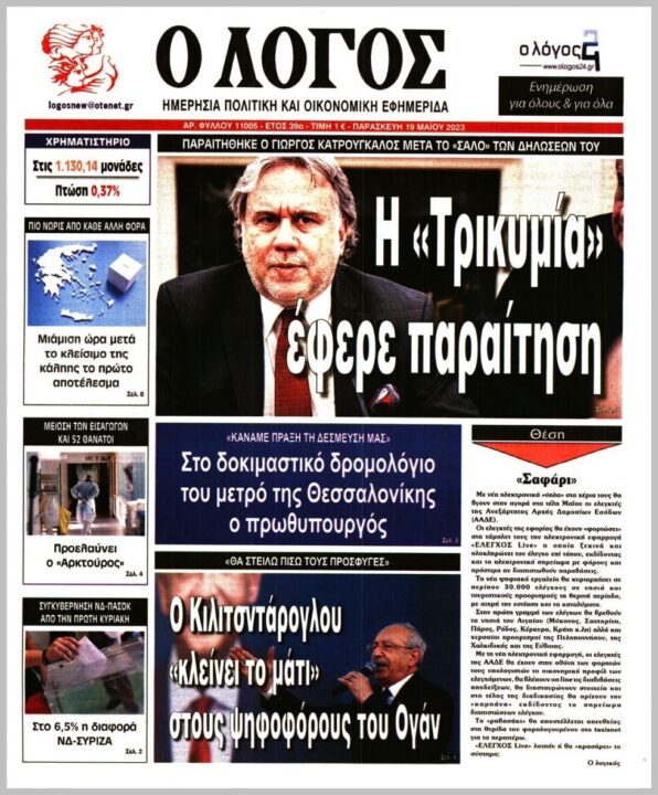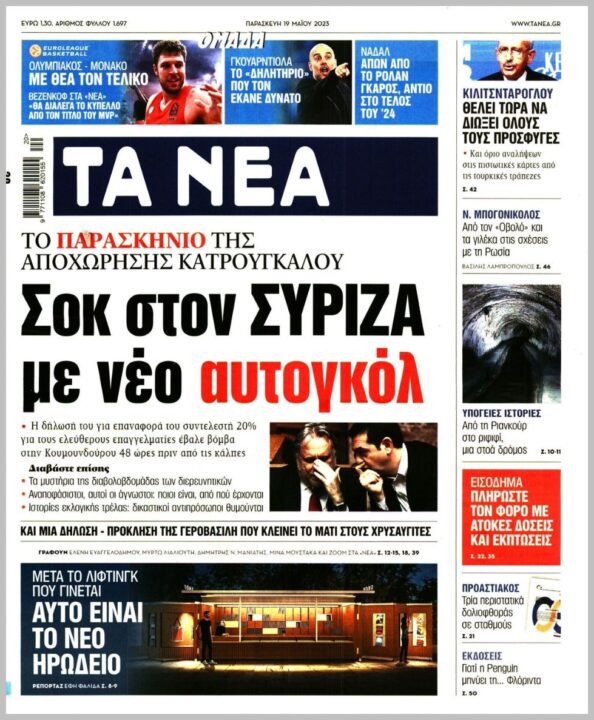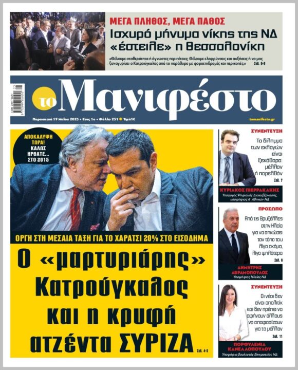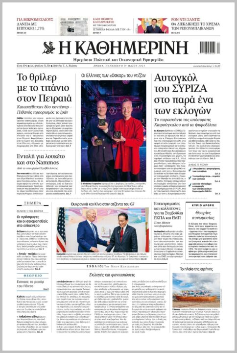 Τα πρωτοσέλιδα των πολιτικών εφημερίδων της Παρασκευής (19/5)