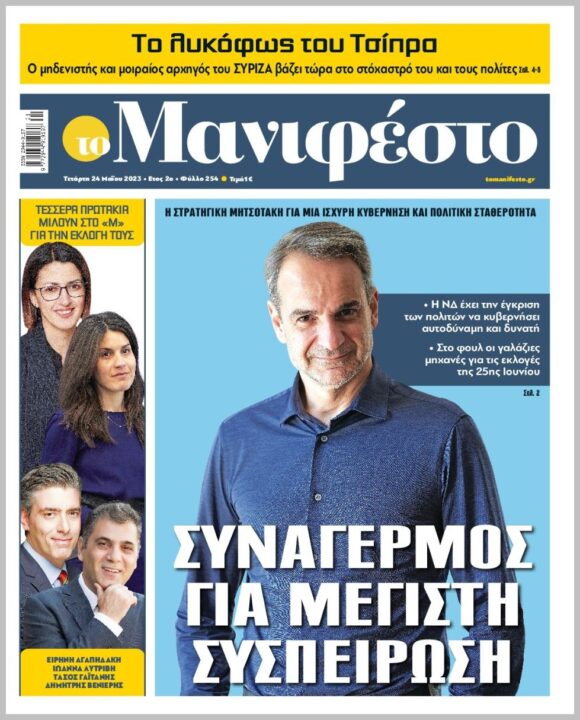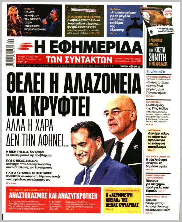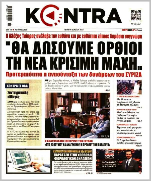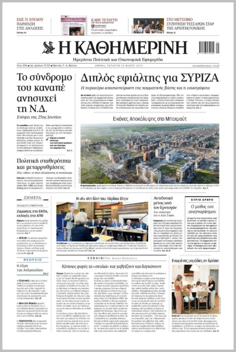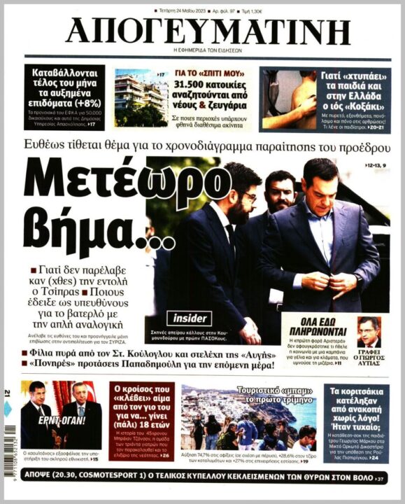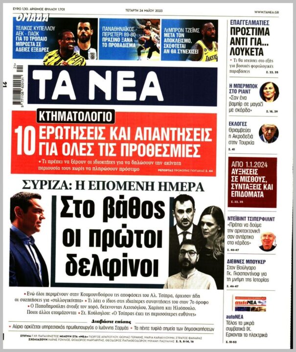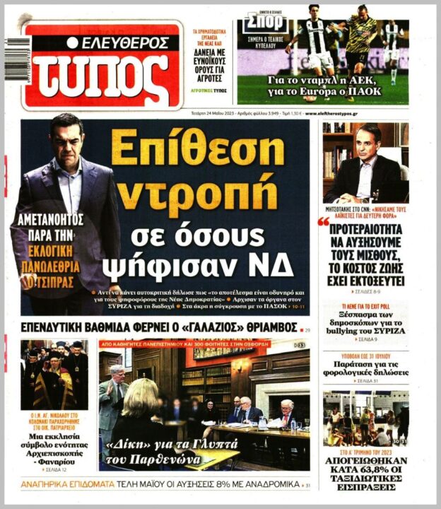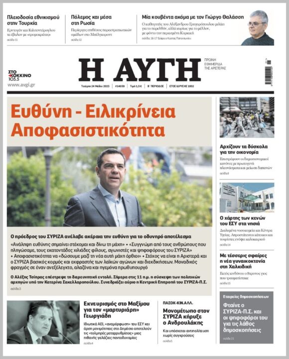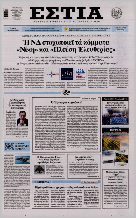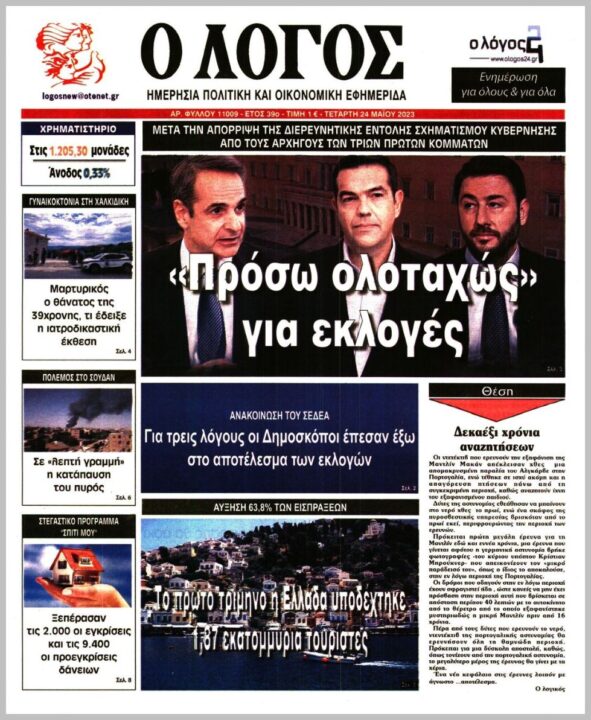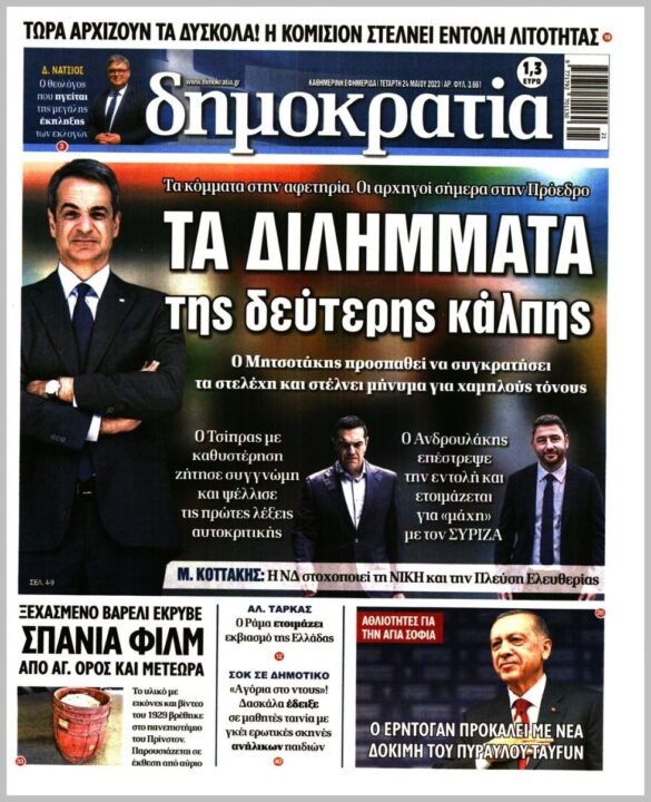 Τα πρωτοσέλιδα των πολιτικών εφημερίδων της Τετάρτης (24/5)
