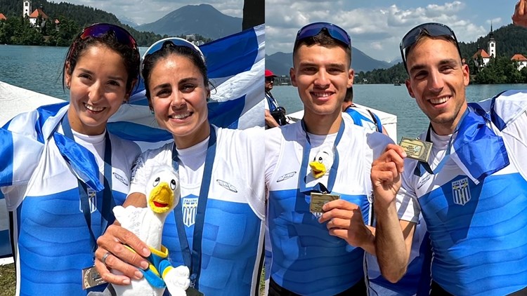Η Ελλάδα πανηγυρίζει την κατάκτηση δυο μεταλλίων, ενός ασημένιο κι ενός χάλκινου στο Ευρωπαϊκό πρωτάθλημα Κωπηλασίας Ανδρών-Γυναικών που διεξάγεται στο Μπλεντ της Σλοβενίας.