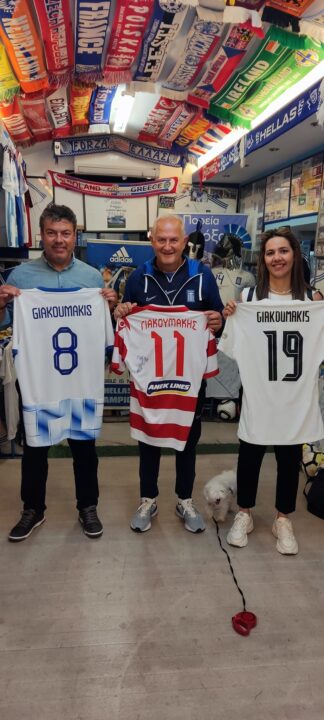 Στο μουσείο της Εθνικής Ελλάδος στα Χανιά βρέθηκαν οι γονείς του Γιώργου Γιακουμάκη, που είχαν την ευκαιρία να δουν από κοντά χιλιάδες εκθέματα, αλλά και να φωτογραφηθούν με τις φανέλες του γιού τους, που πλέον αγωνίζεται στο MLS.
