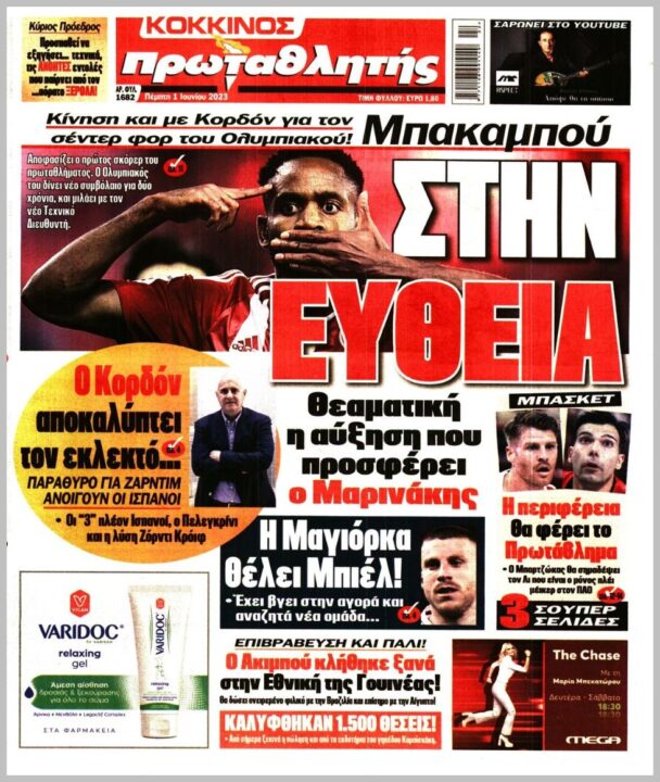 Τα αθλητικά πρωτοσέλιδα της Πέμπτης (1/6)
