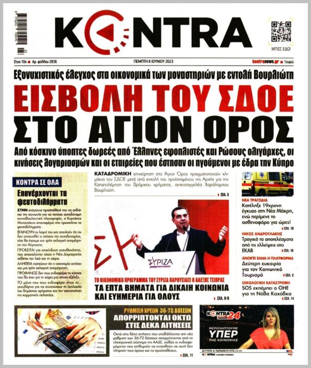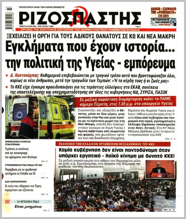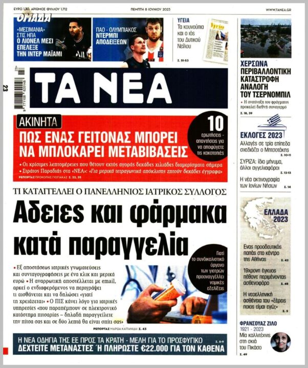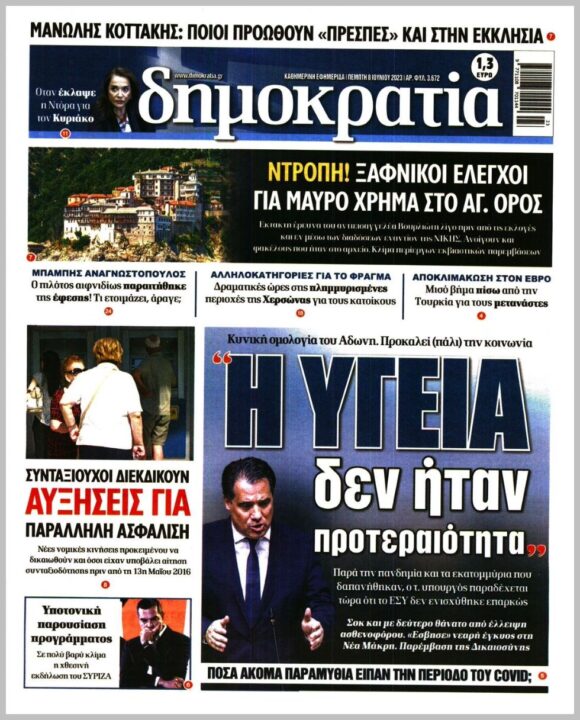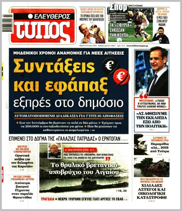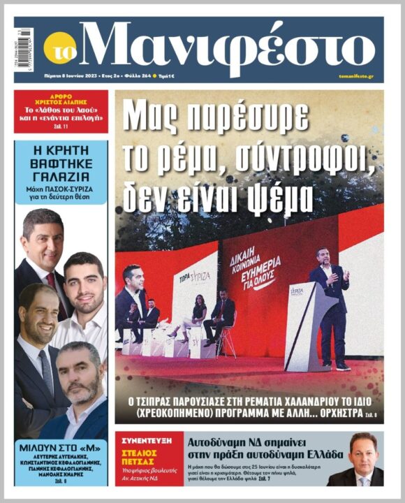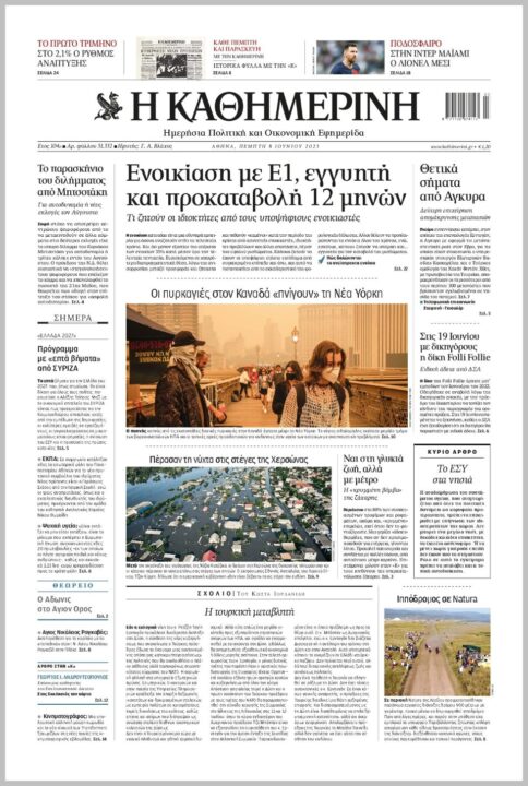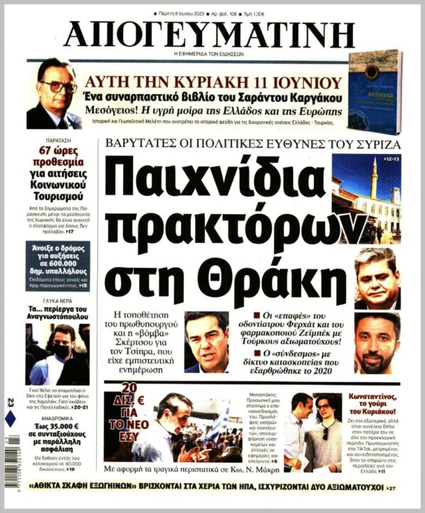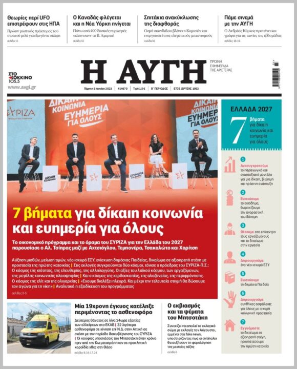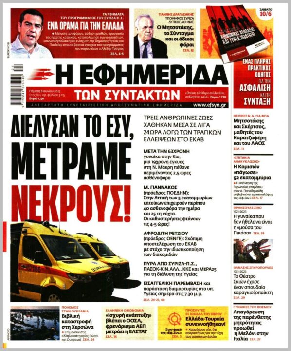 Τα πρωτοσέλιδα των πολιτικών εφημερίδων της Πέμπτης (8/6)