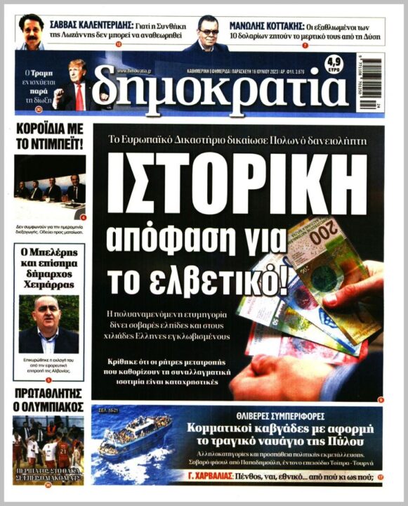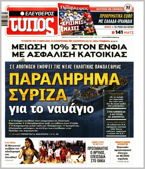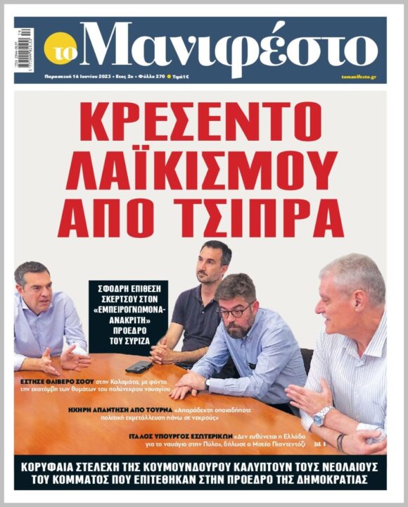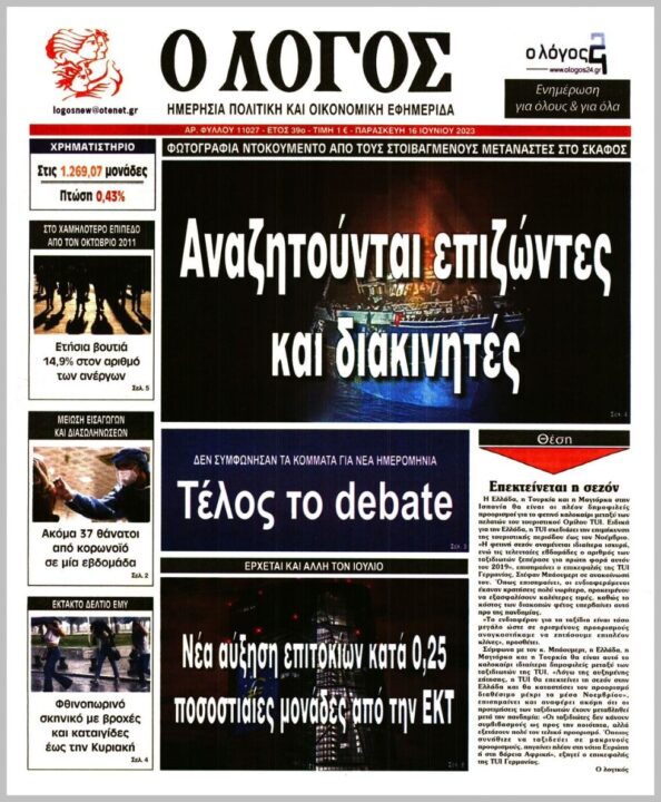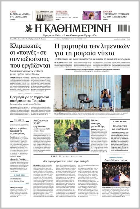 Τα πρωτοσέλιδα των πολιτικών εφημερίδων της Παρασκευής (16/6)