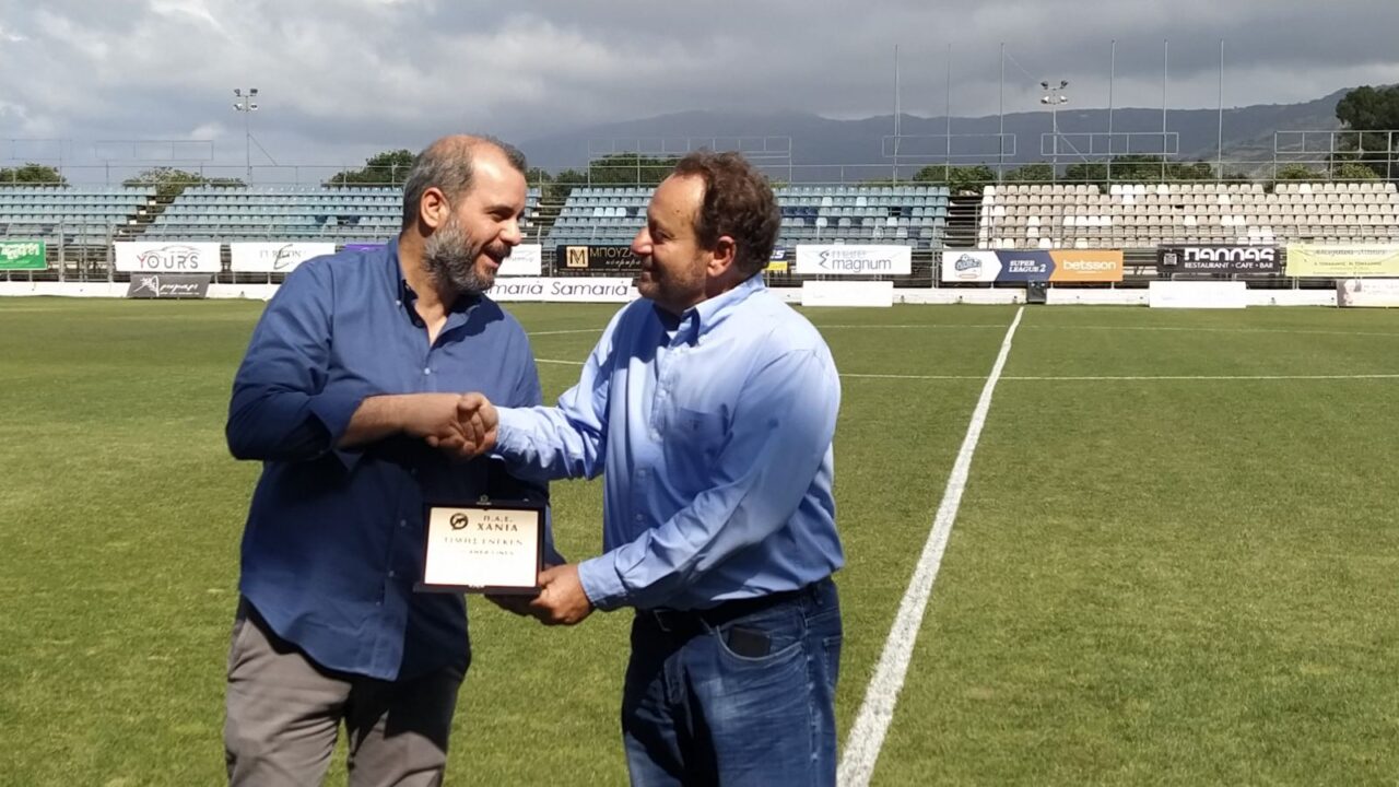 Πριν την σέντρα του αγώνα – γιορτή στα Περιβόλια βραβεύτηκε από την ΕΠΣΧ ο διαιτητής της αναμέτρησης, Νίκος Γεωργόπουλος. Θυμίζουμε ότι ο Γεωργόπουλος βρισκόταν για 6 χρόνια στα Χανιά, ως φοιτητής, και είχε διατελέσει διαιτητής της Ένωσης της πόλης. Πλέον βρίσκεται στον Σύνδεσμο Αρκαδίας. Επίσης, πριν την έναρξη βραβεύτηκαν ΑΝΕΚ Lines και ΣΑΜΑΡΙΑ ως οι μεγάλοι χορηγοί της ΠΑΕ Χανιά.