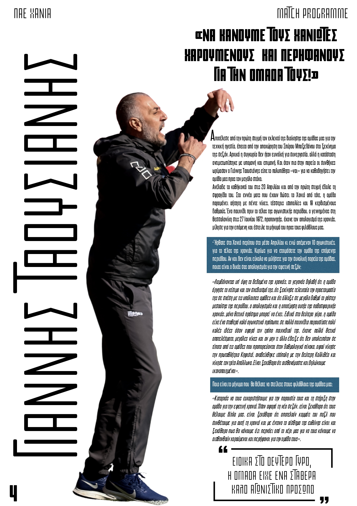 Σε μια ιδιαίτερα αποκαλυπτική συνέντευξη ο Γιάννης Ταουσιάνης μίλησε στο match programme του αγώνα με τον ΟΣΦΠ Β’ και αναφέρθηκε στον μεγάλο στόχο της ομάδας απέναντι στον κόσμο της.