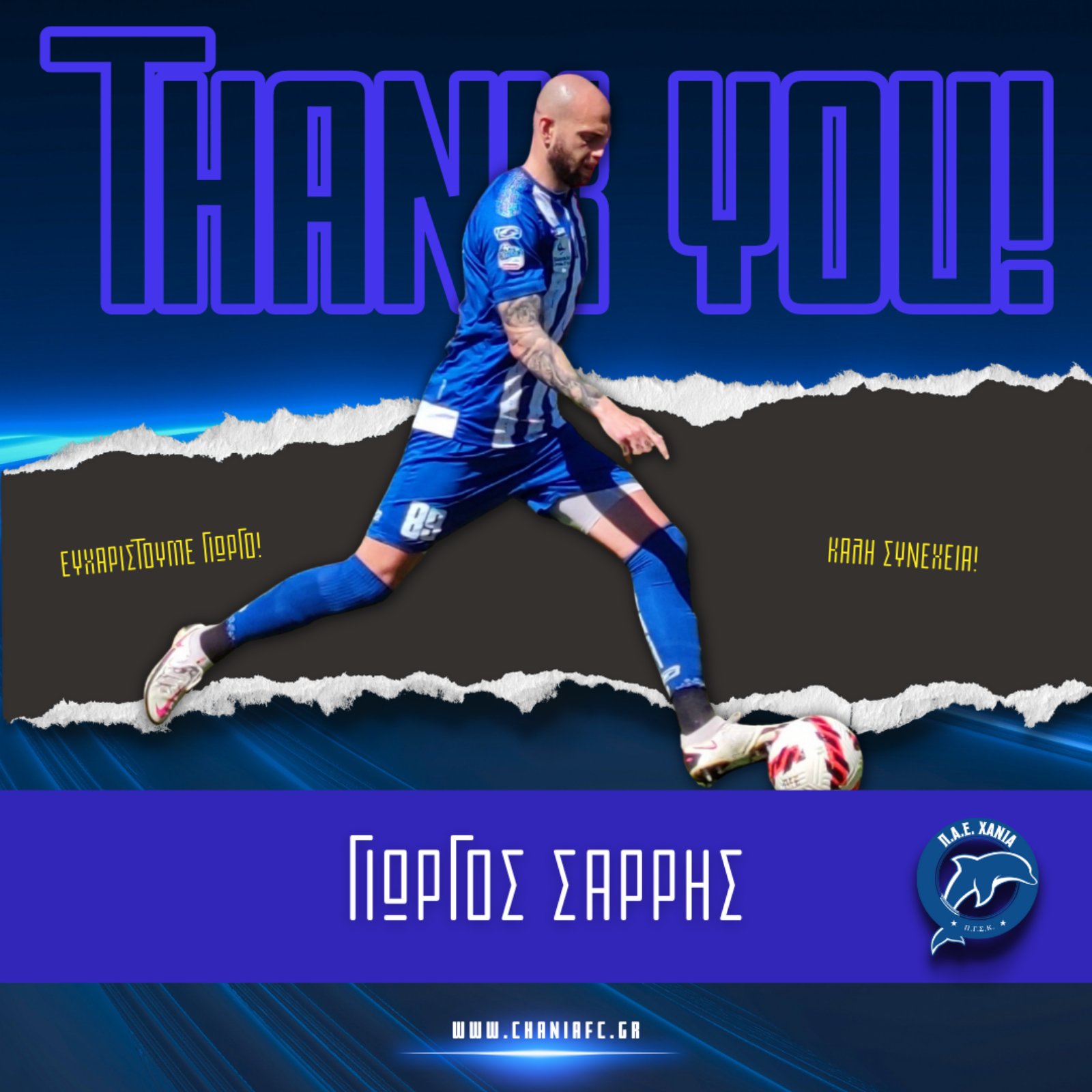 Η ΠΑΕ ΧΑΝΙΑ ανακοινώνει τη λήξη της συνεργασίας με τον ποδοσφαιριστή Γιώργο Σαρρή.