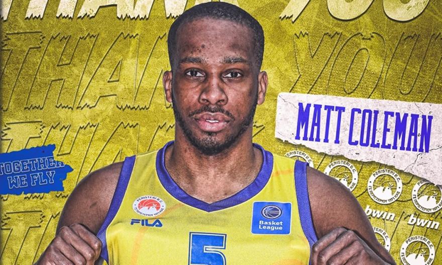 Παρελθόν αποτελεί για το Περιστέρι ο Ματ Κόλεμαν, καθώς η ομάδα των δυτικών προααστίων έκανε γνωστή την ολοκλήρωση της συνεργασίας της με τον 25χρονο γκαρντ.