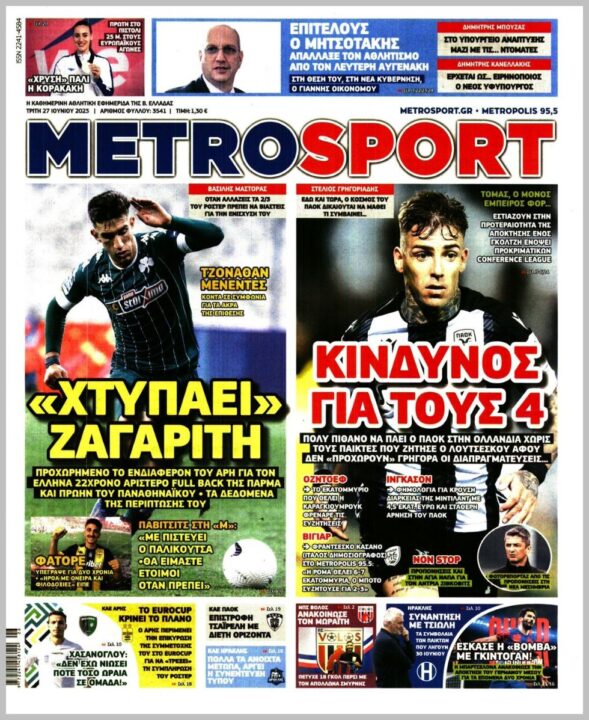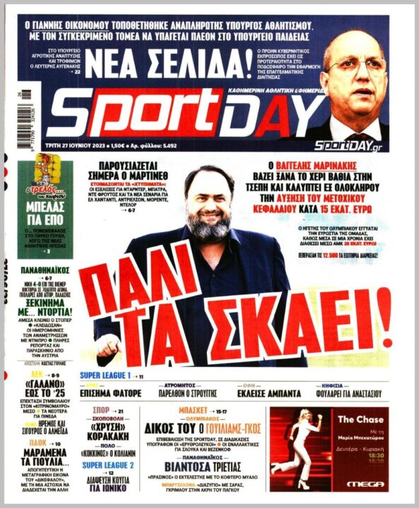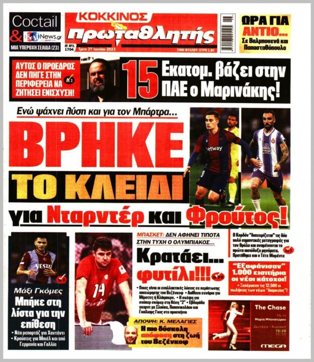 Τα αθλητικά πρωτοσέλιδα της Τρίτης (27/6)