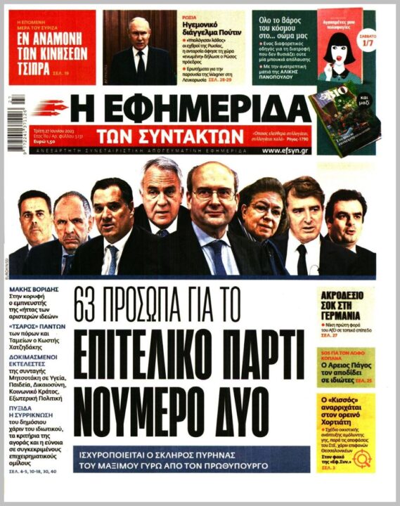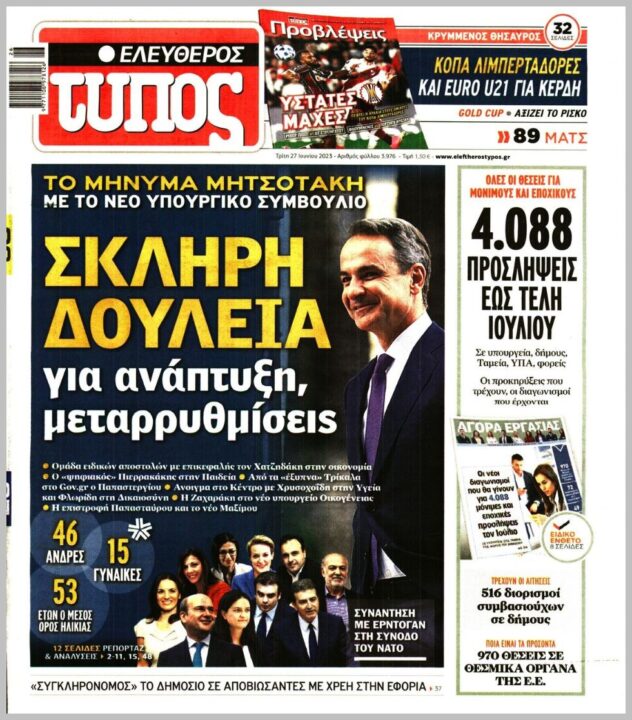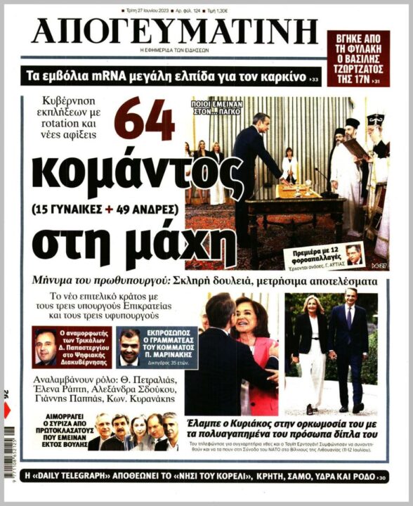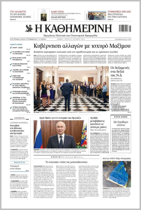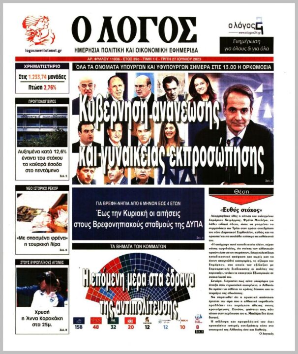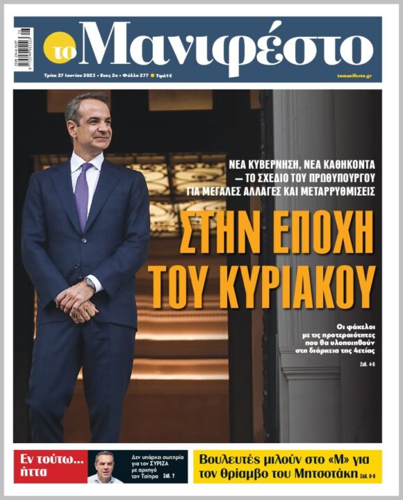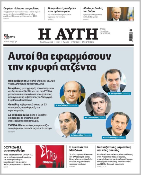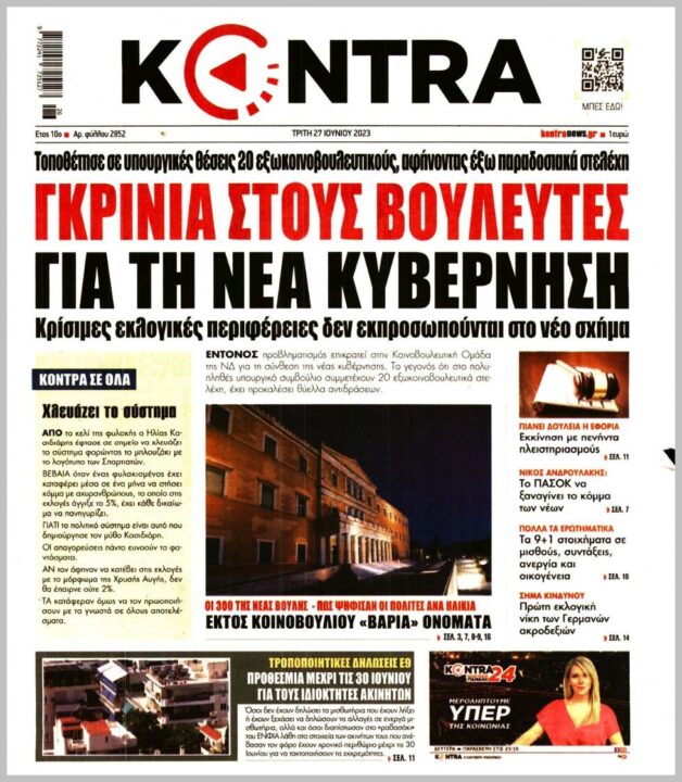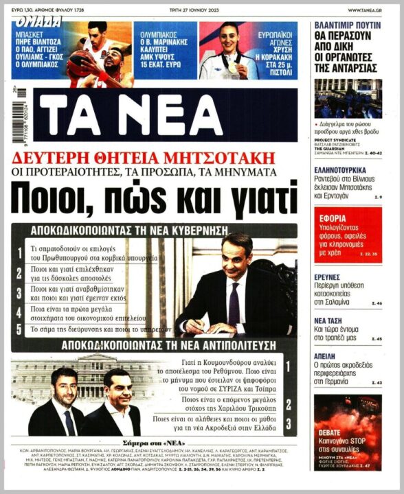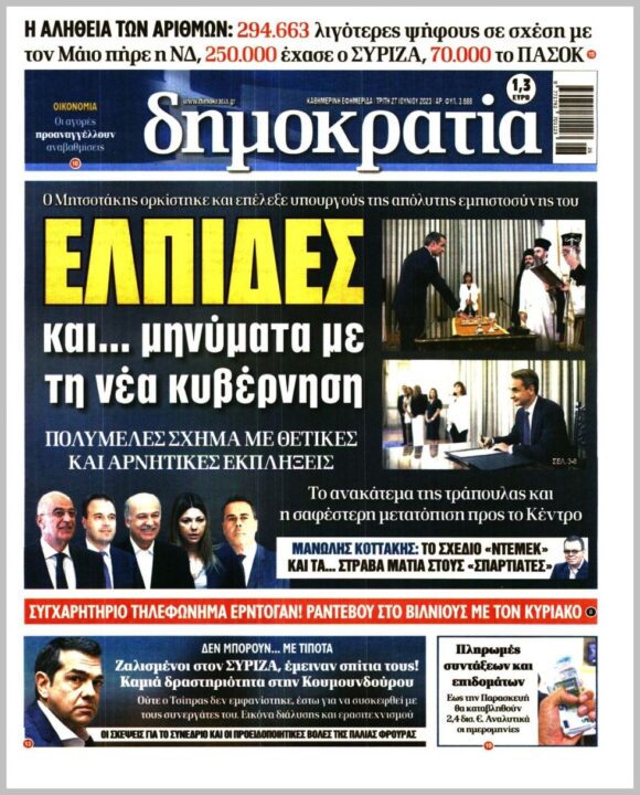 Τα πρωτοσέλιδα των πολιτικών εφημερίδων της Τρίτης (27/6)
