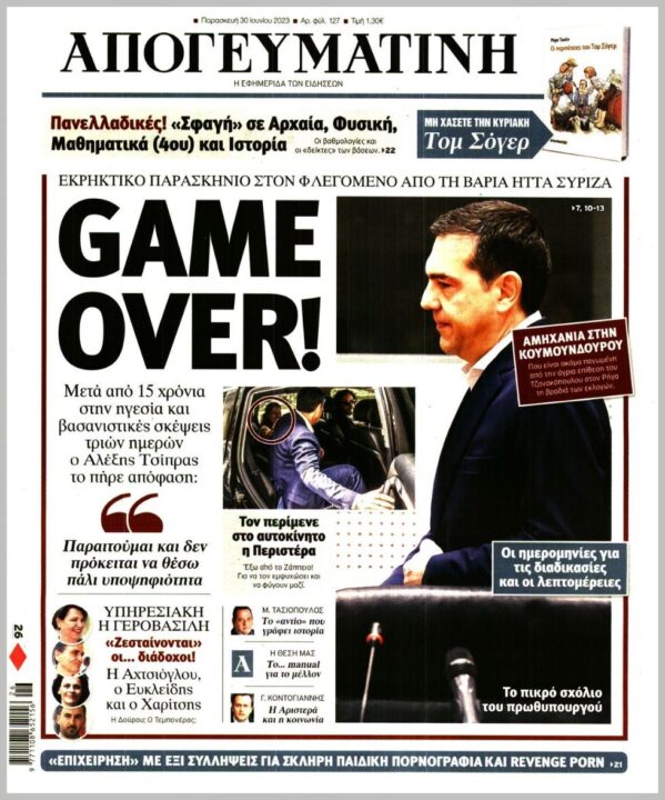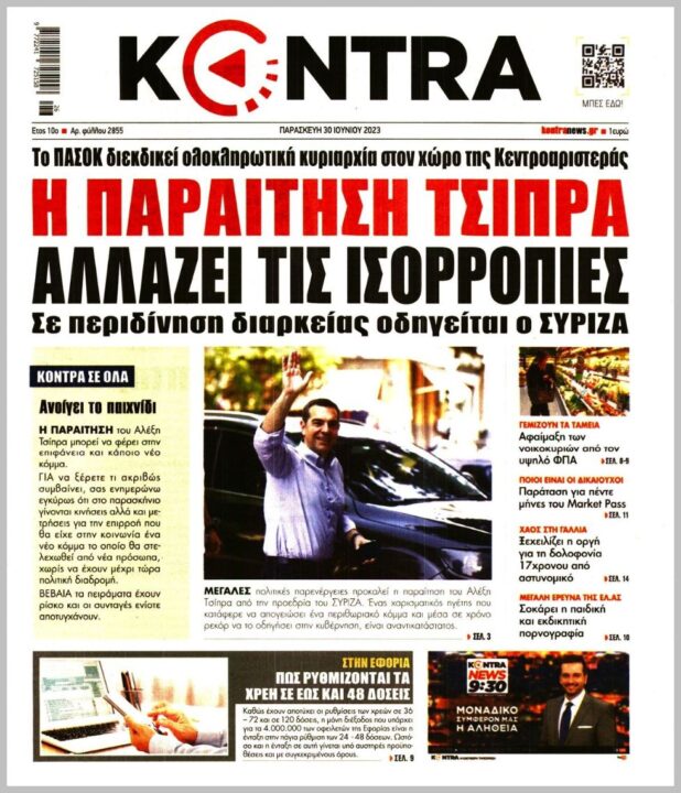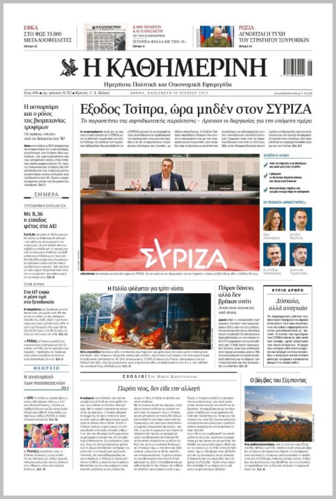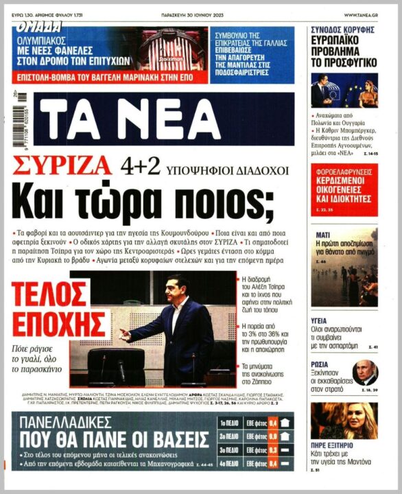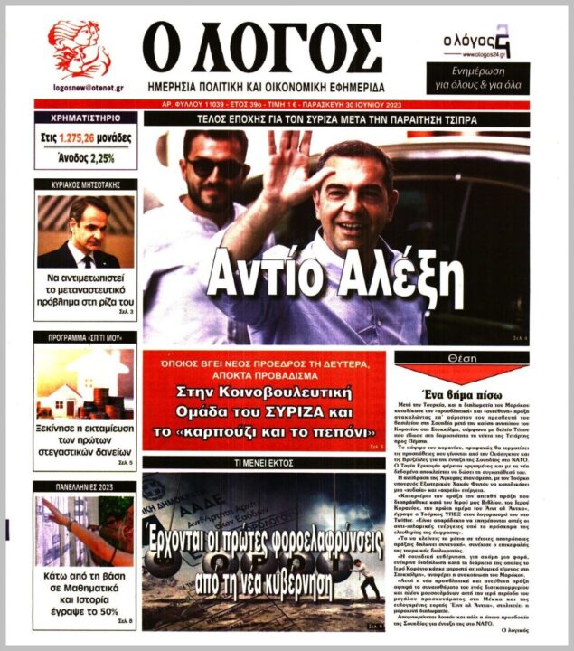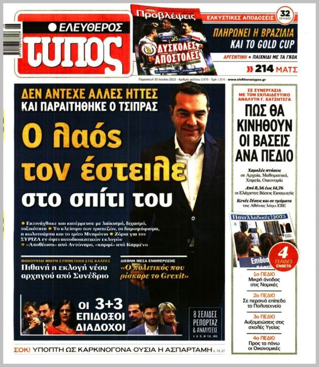 Τα πρωτοσέλιδα των πολιτικών εφημερίδων της Παρασκευής (30/6)