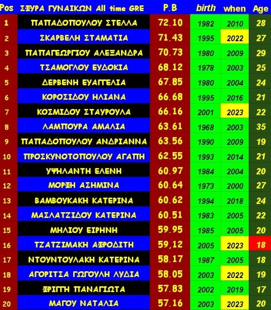 Η 18χρονη είχε ως καλύτερη της επίδοση 57.07 από το 2021, το οποίο συνέτριψε στην Κύπρο και πλέον βάζει πλώρη για το Ευρωπαϊκό Κ20 που θα γίνει στην Ιερουσαλήμ.