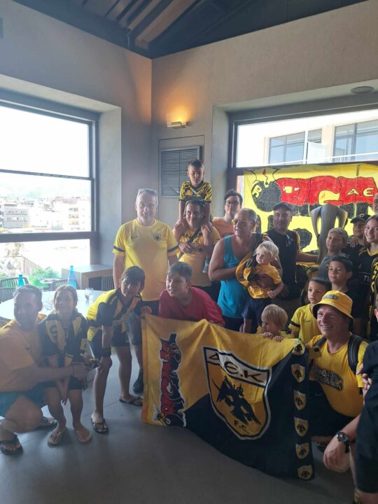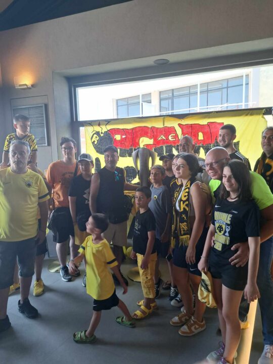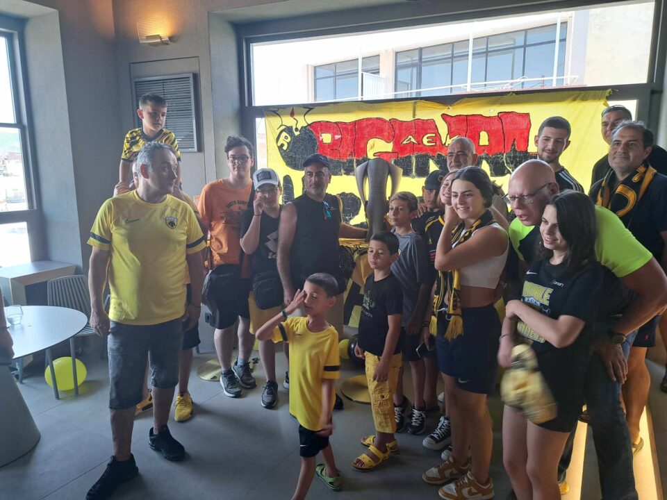 Οι φίλοι της ΑΕΚ ετοίμασαν πανηγυρική υποδοχή και στη συνέχεια φωτογραφήθηκαν μαζί με το κύπελλο.