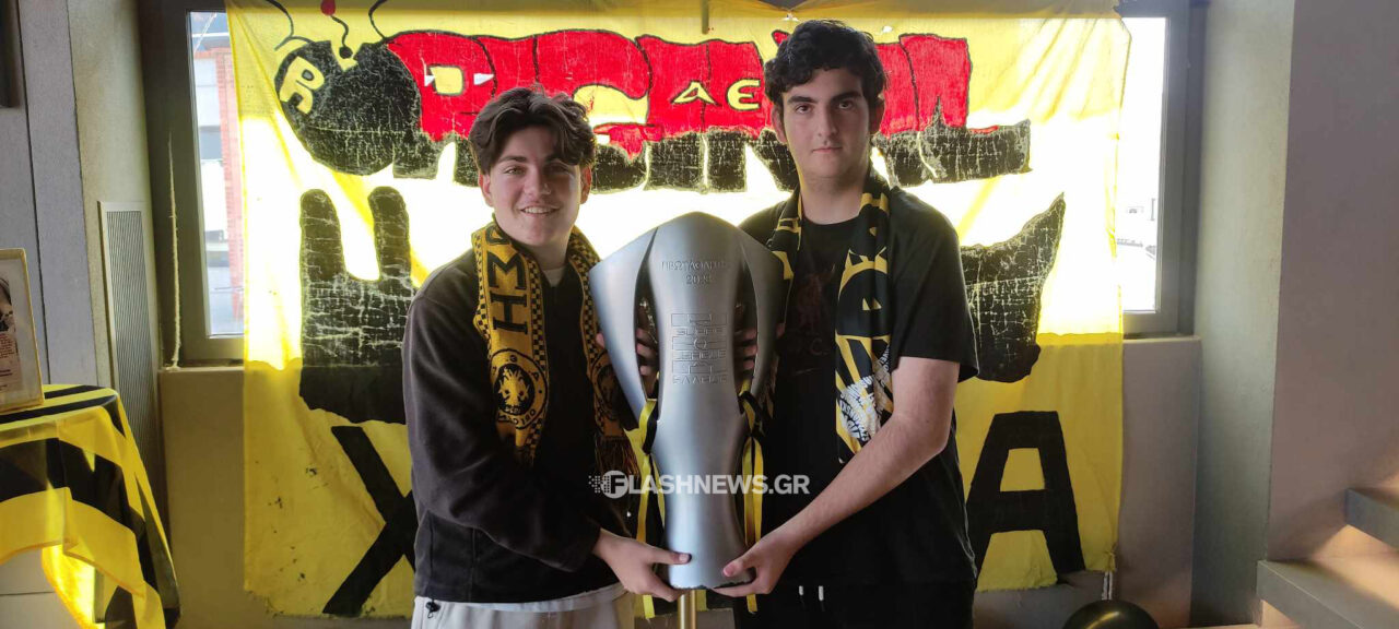 Το τρόπαιο του πρωταθλήματος της σεζόν 2022-2023 υποδέχτηκαν οι οπαδοί της ΑΕΚ στα Χανιά, σήμερα το μεσημέρι.