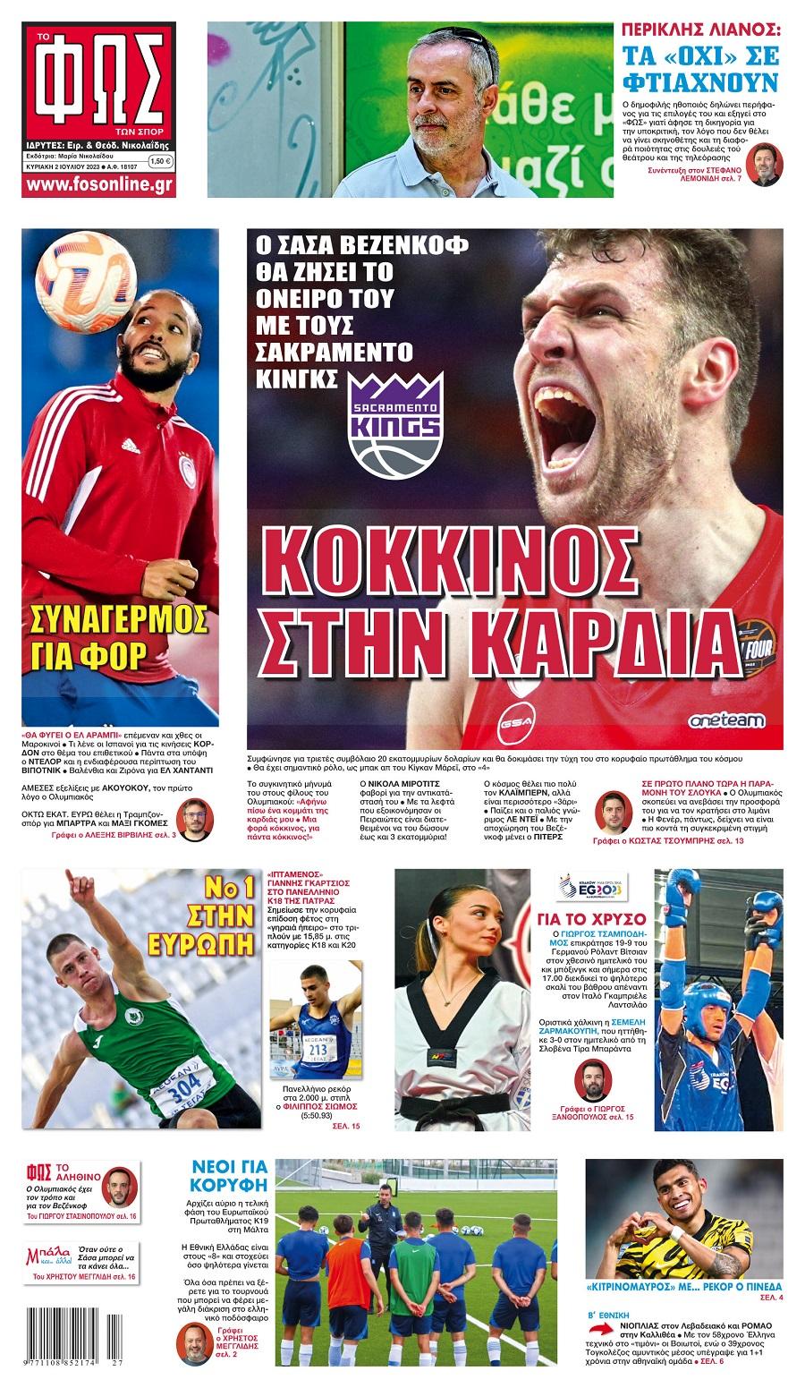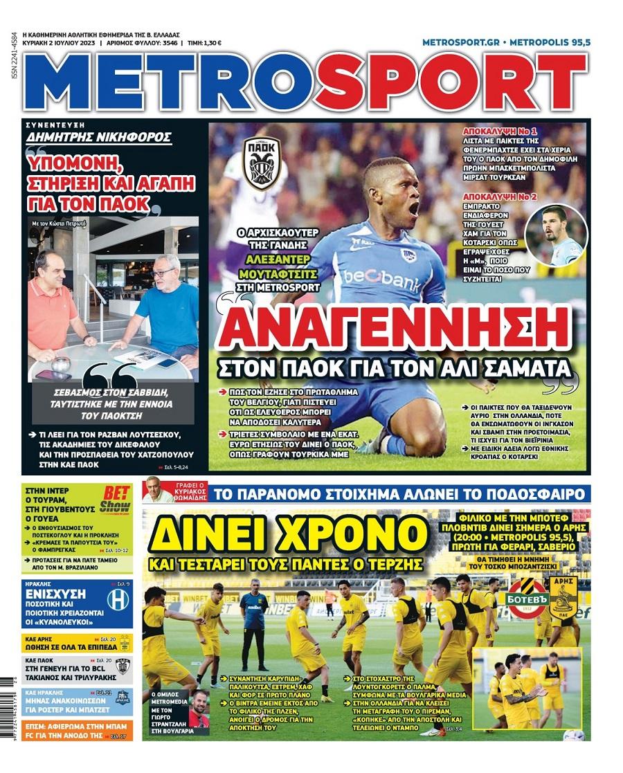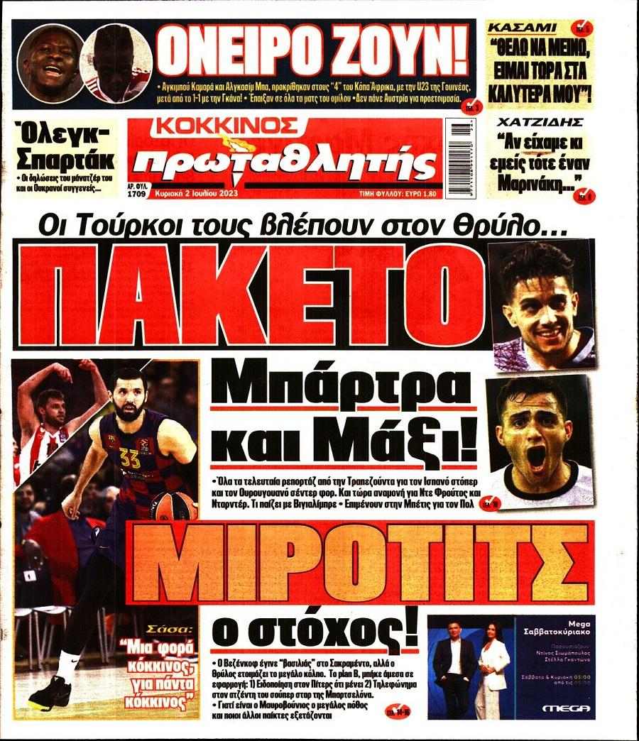 Τα αθλητικά πρωτοσέλιδα της ημέρας(02/07)