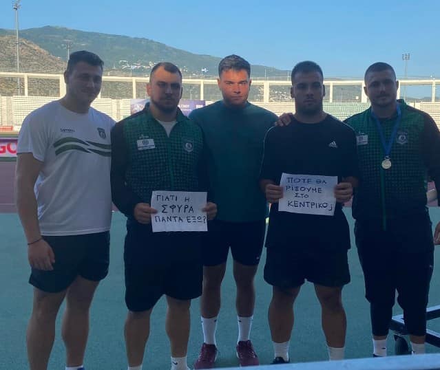Ωστόσο, μετά την ολοκλήρωση του τελικού του Πανελληνίου πρωταθλήματος στο αγώνισμα της σφυροβολίας, οι Έλληνες αθλητές εξέφρασαν με ευγενή, αλλά παράλληλα δεικτικό τρόπο τα “παράπονα” τους, στέλνοντας το δικό τους μήνυμα.