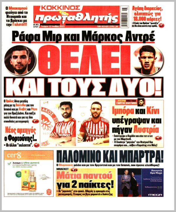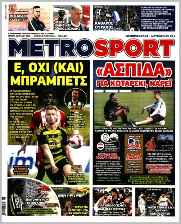 Τα αθλητικά πρωτοσέλιδα της Τετάρτης (12/7)