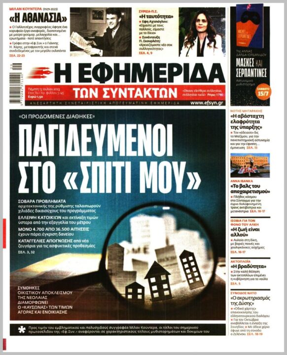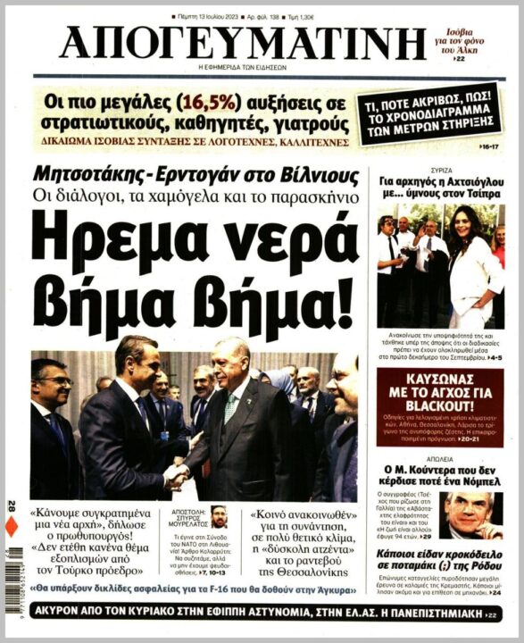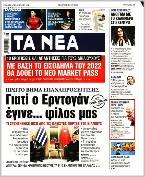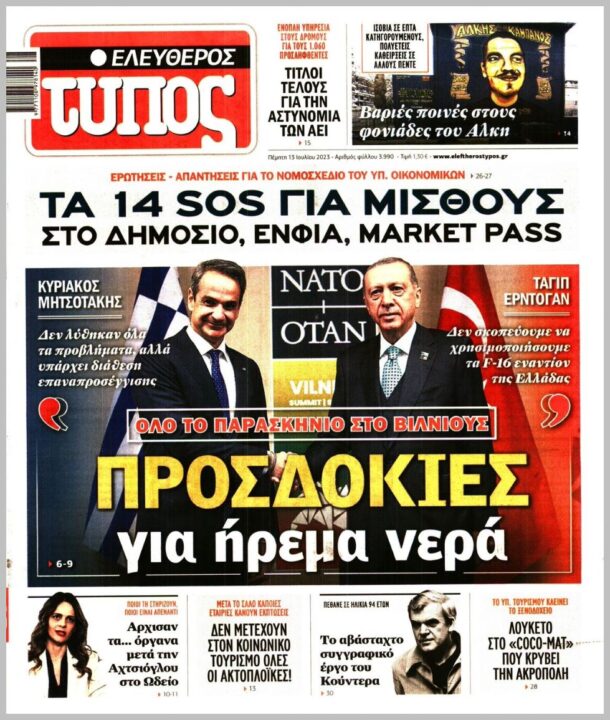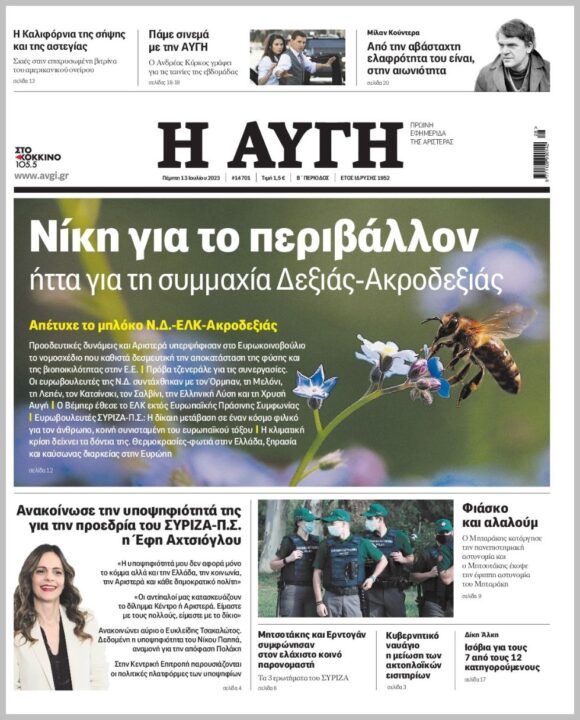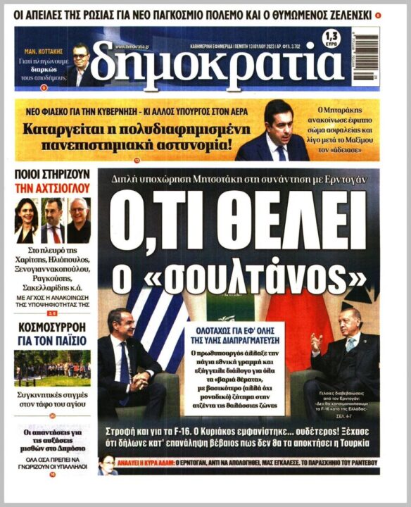 Τα πρωτοσέλιδα των πολιτικών εφημερίδων της Πέμπτης (13/7)