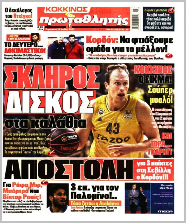Τα αθλητικά πρωτοσέλιδα της Παρασκευής (14/7)