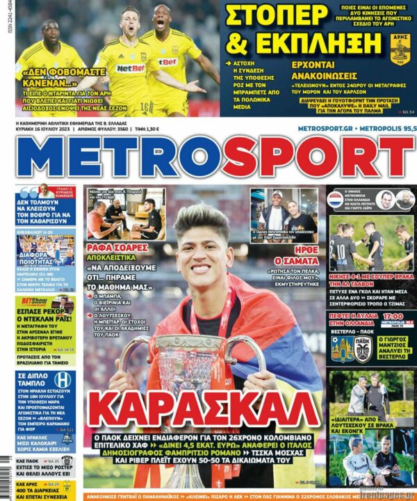 Τα πρωτοσέλιδα των αθλητικών εφημερίδων της Κυριακής (16/7)