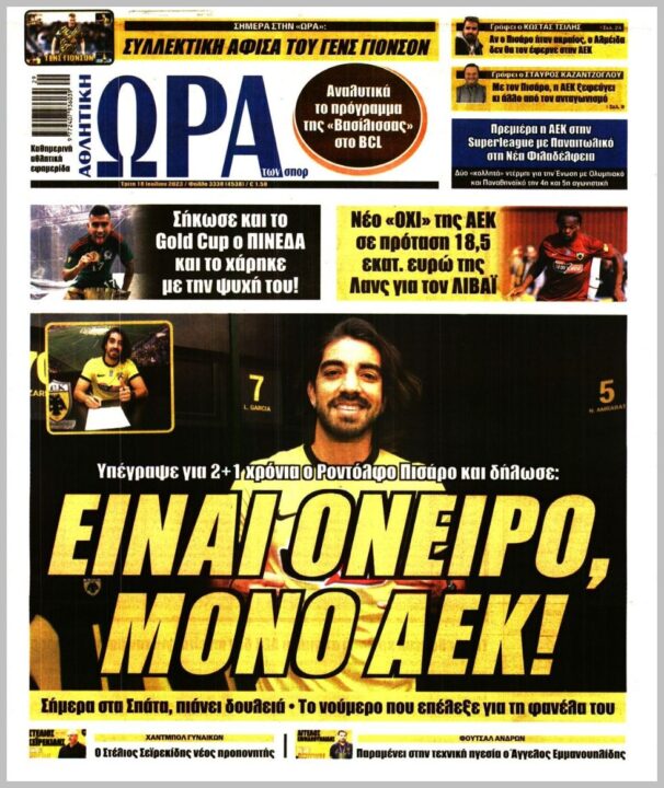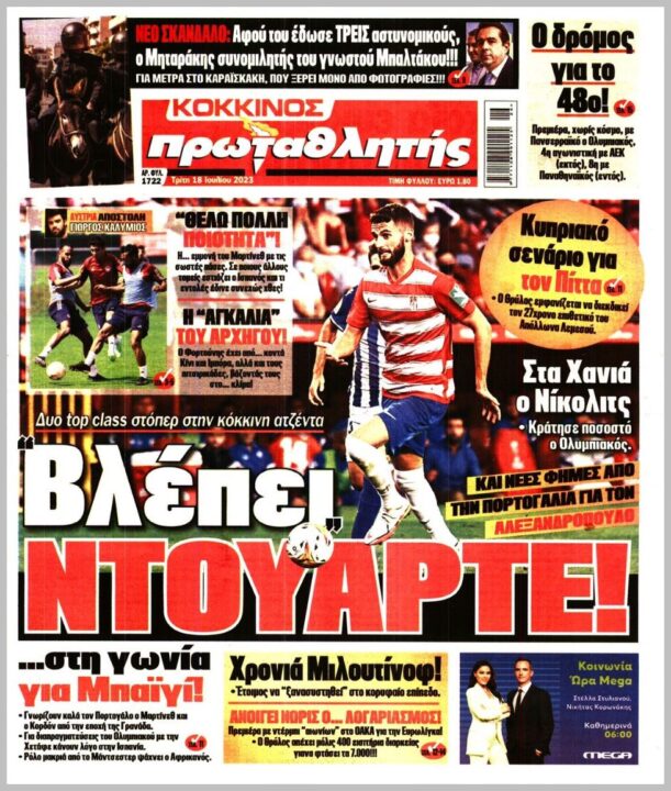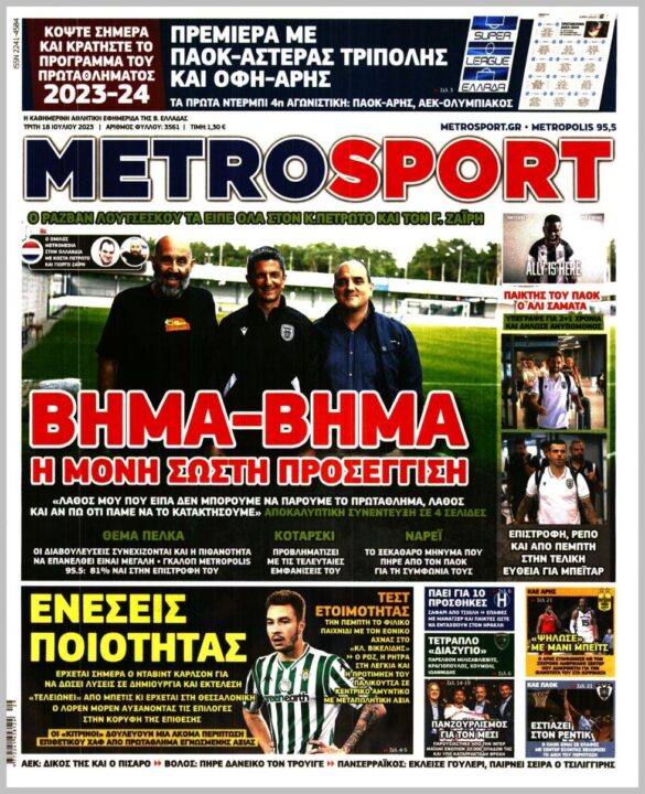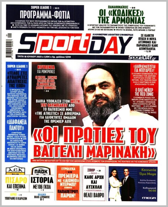 Τα αθλητικά πρωτοσέλιδα της Τρίτης (18/7)