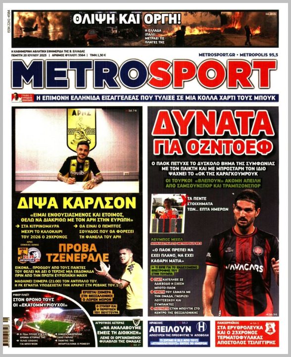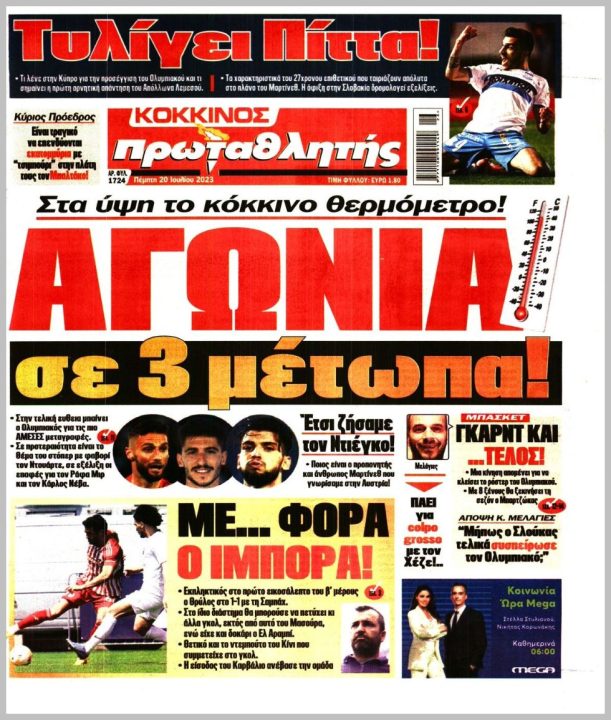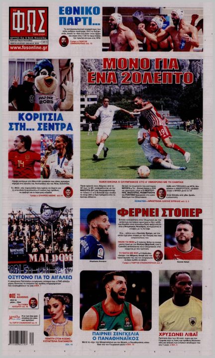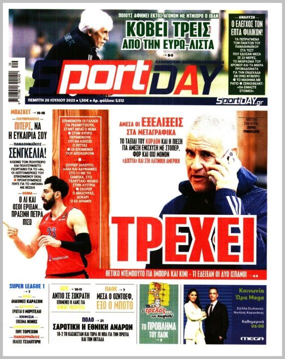 Τα αθλητικά πρωτοσέλιδα της Πέμπτης (20/7)