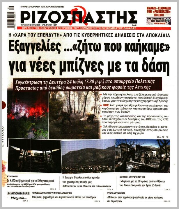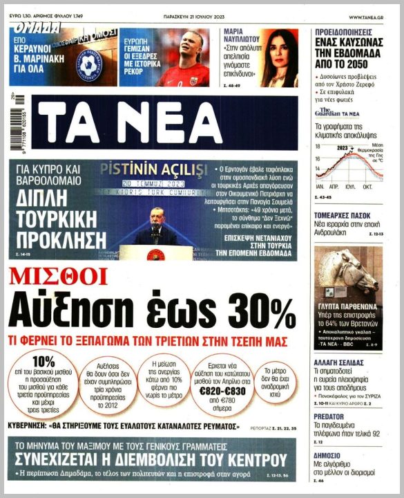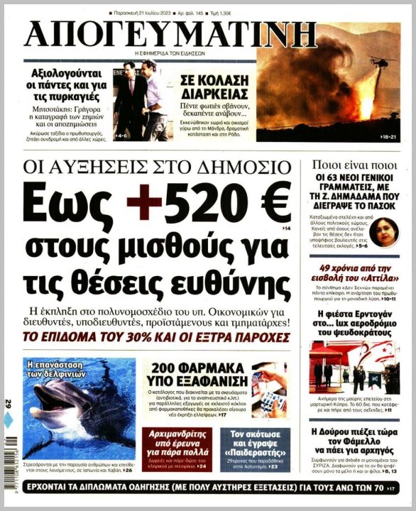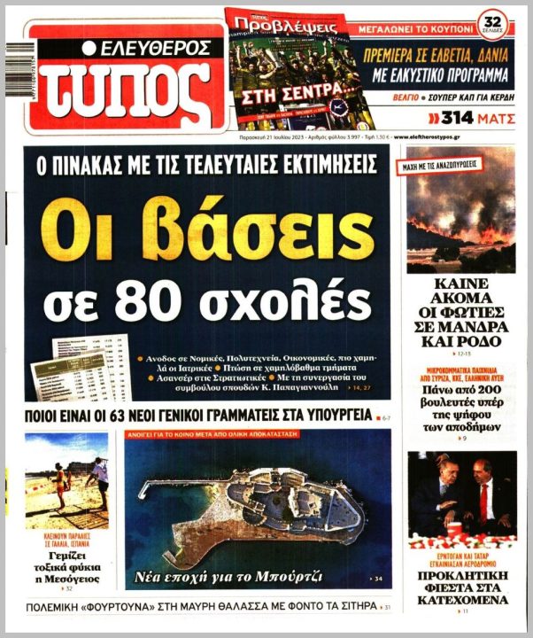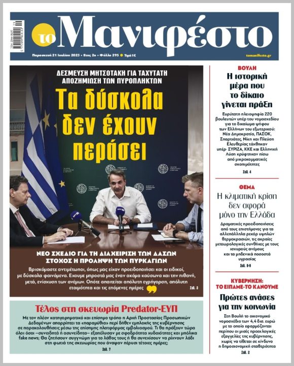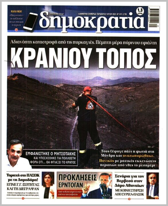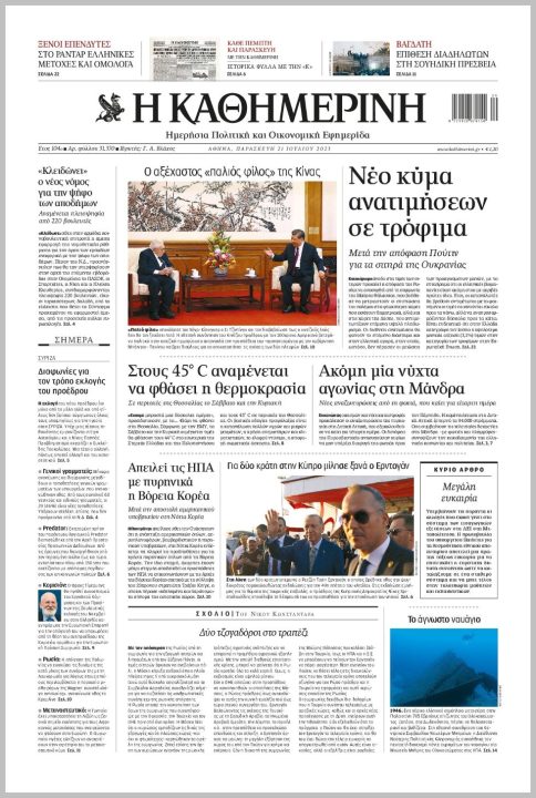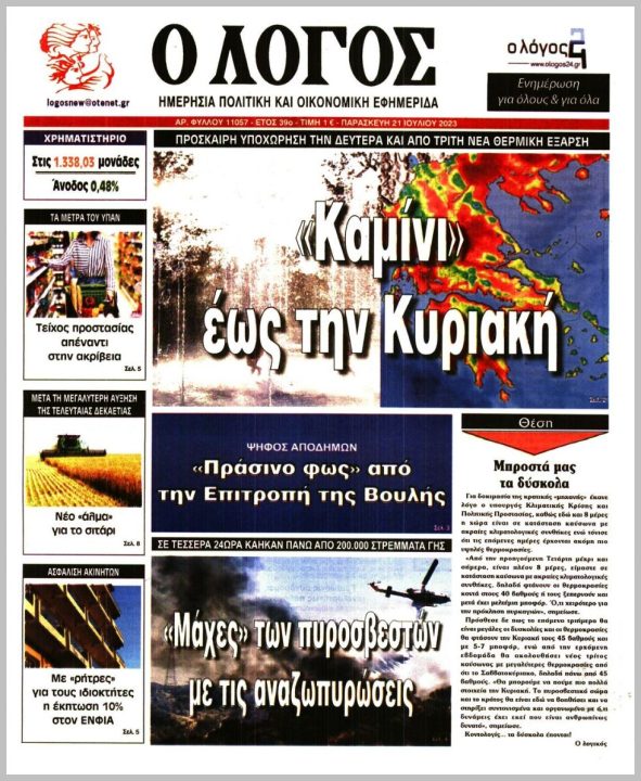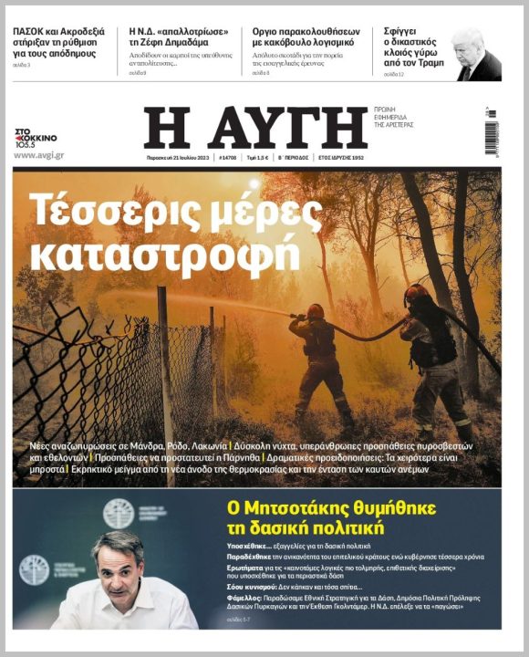 Τα πρωτοσέλιδα των πολιτικών εφημερίδων της Παρασκευής (21/7)