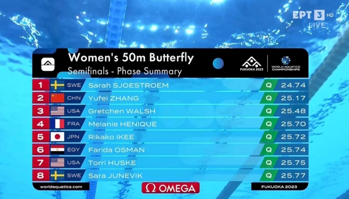 Η Χανιώτισσα πρωταθλήτρια τερμάτισε 4η στην πρώτη ημιτελική σειρά, καταφέρνοντας να «κατέβει» τα 26 δευτερόλεπτα με χρόνο 25.82 και πραγματοποιώντας μία καλή εμφάνιση.