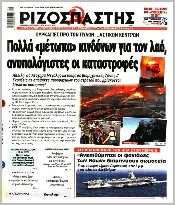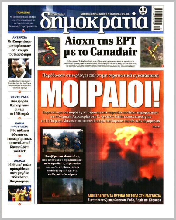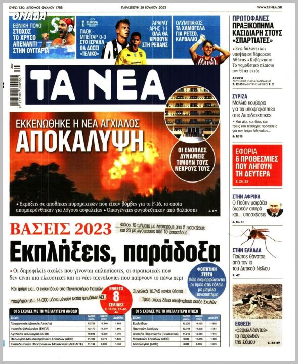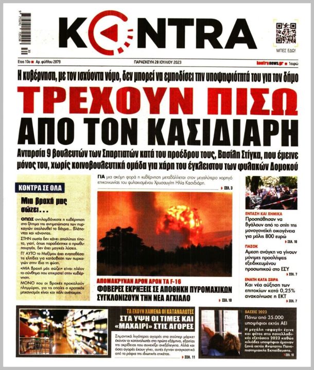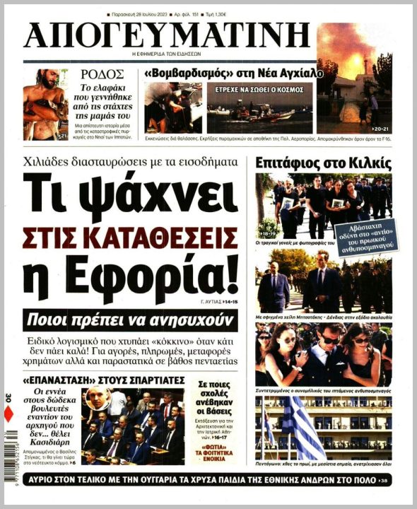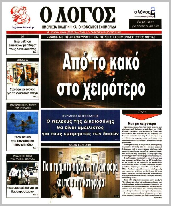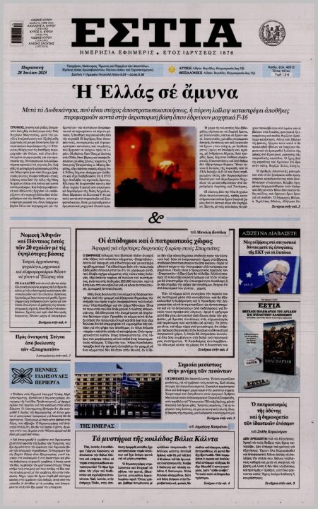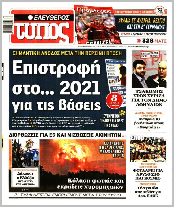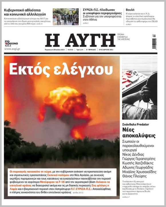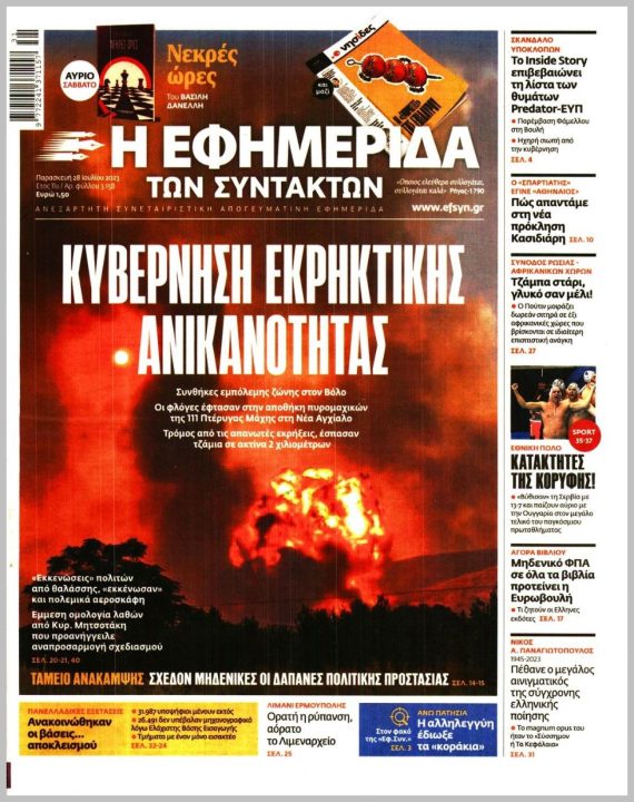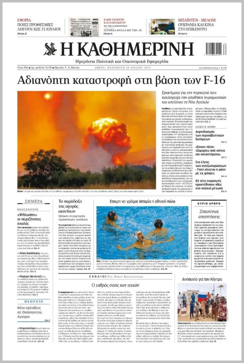 Τα πρωτοσέλιδα των πολιτικών εφημερίδων της Παρασκευής (28/7)