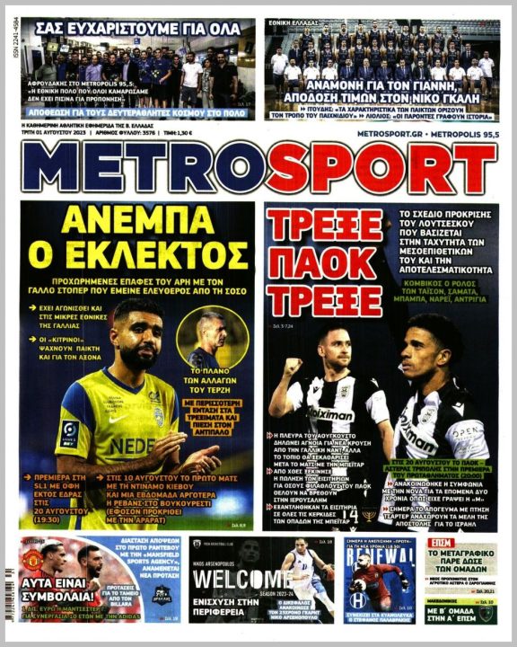Τα αθλητικά πρωτοσέλιδα της Τρίτης (1/8)