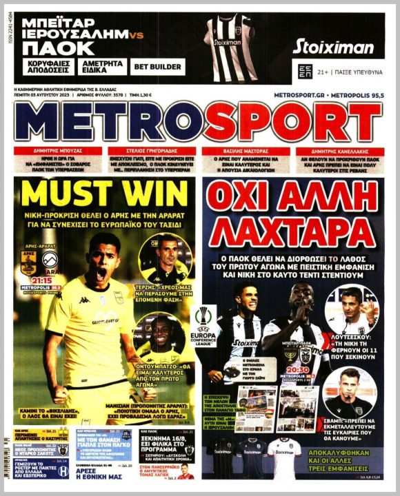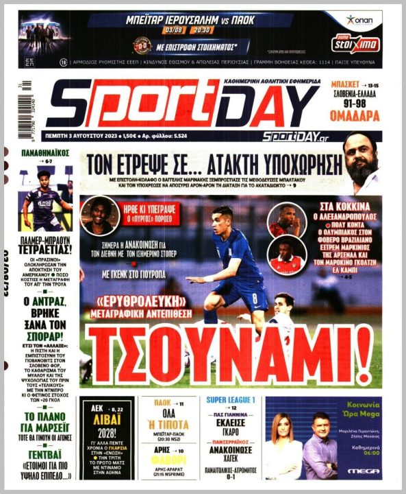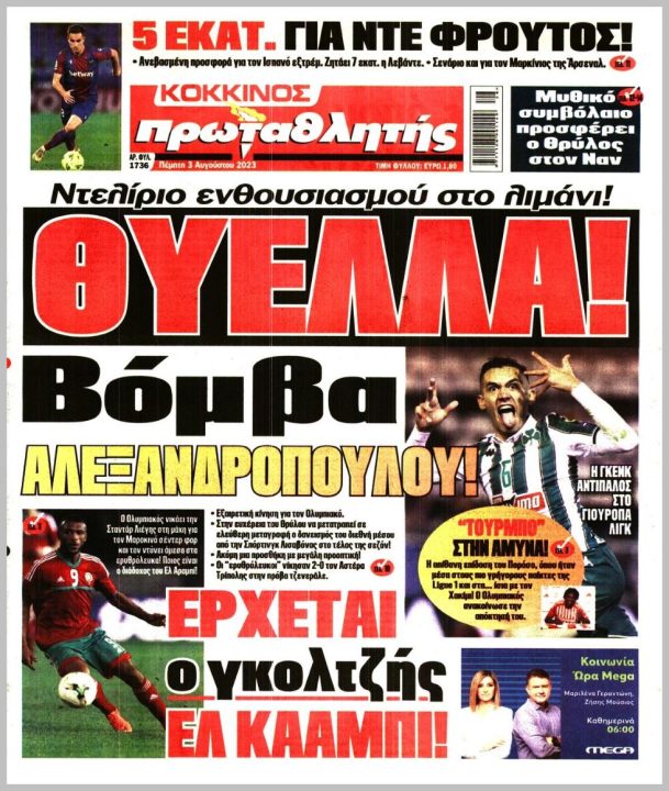 Τα αθλητικά πρωτοσέλιδα της Πέμπτης (3/8)