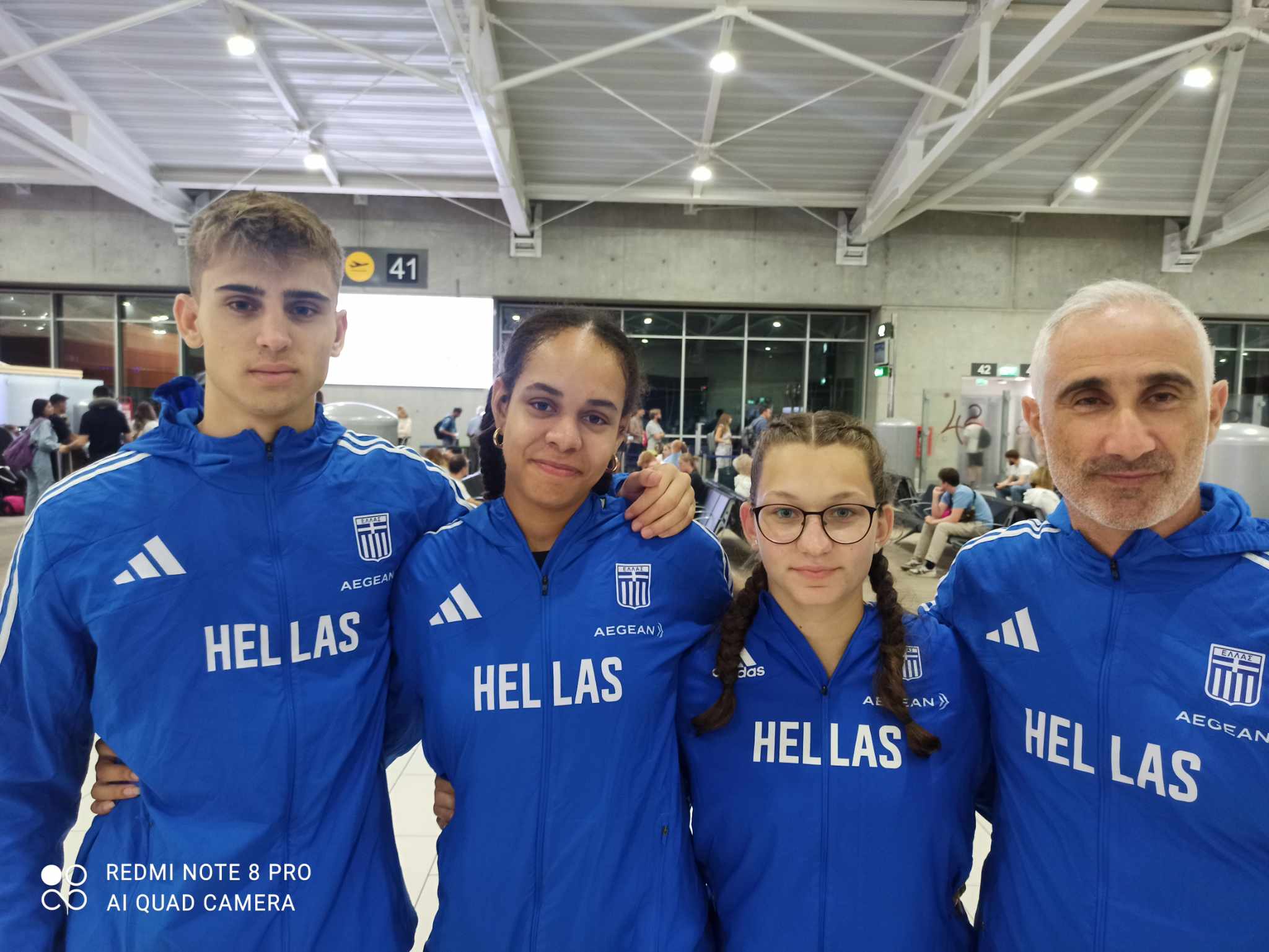 Στην παραπάνω φωτογραφία τα παιδιά που κατέκτησαν ασημένια μετάλλια με τον συνοδό και προπονητή του Χανιώτικου συλλόγου Βαγγέλη Ασαριωτάκη.