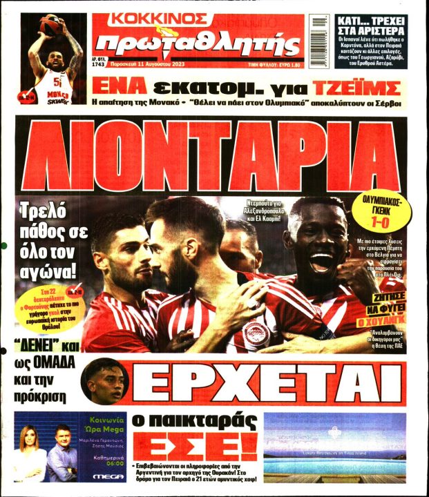 Τα πρωτοσέλιδα του αθλητικού τύπου