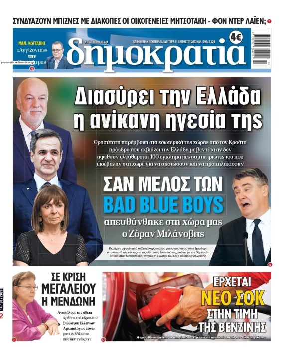 Ο πολιτικός τύπος της ημέρας