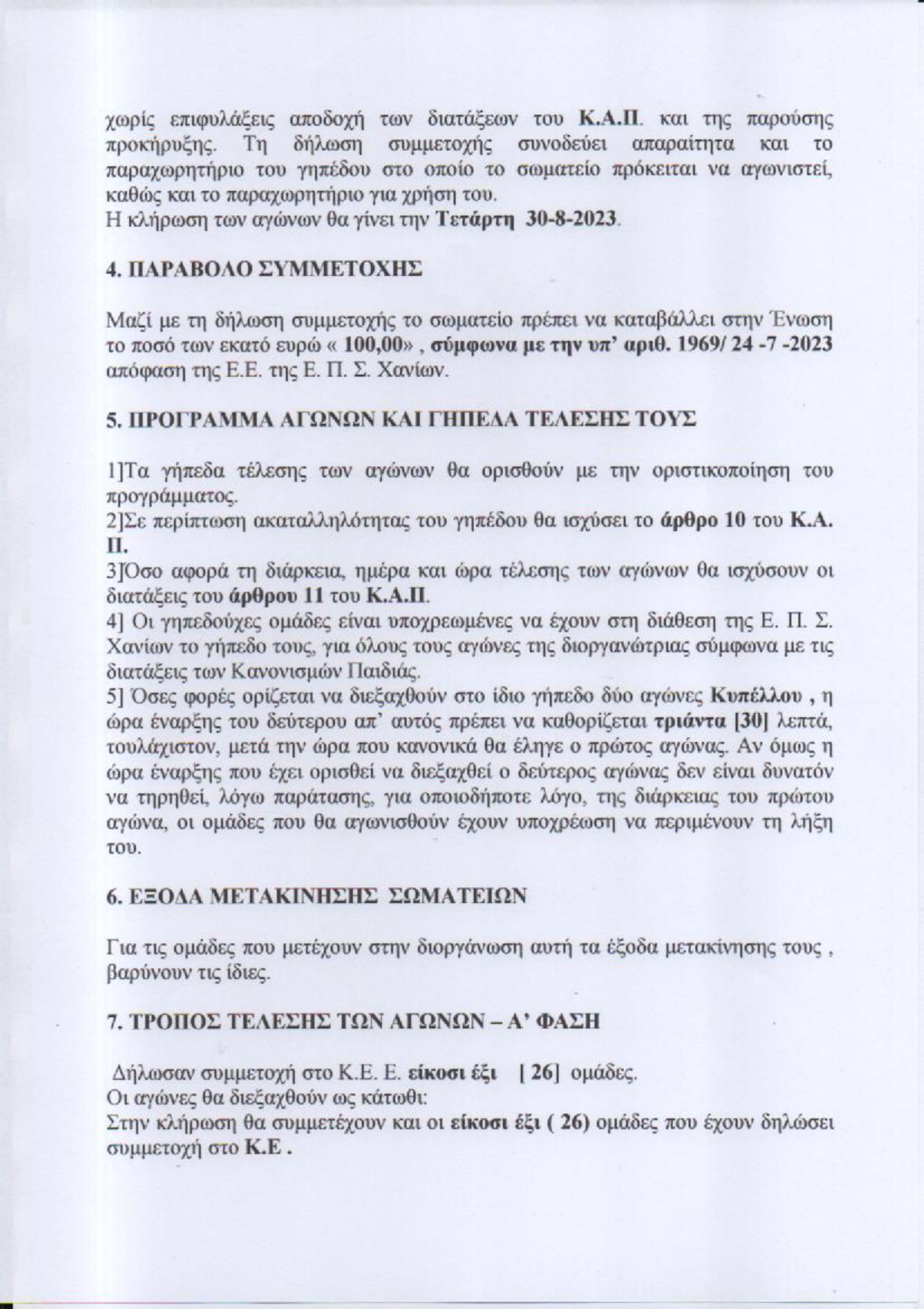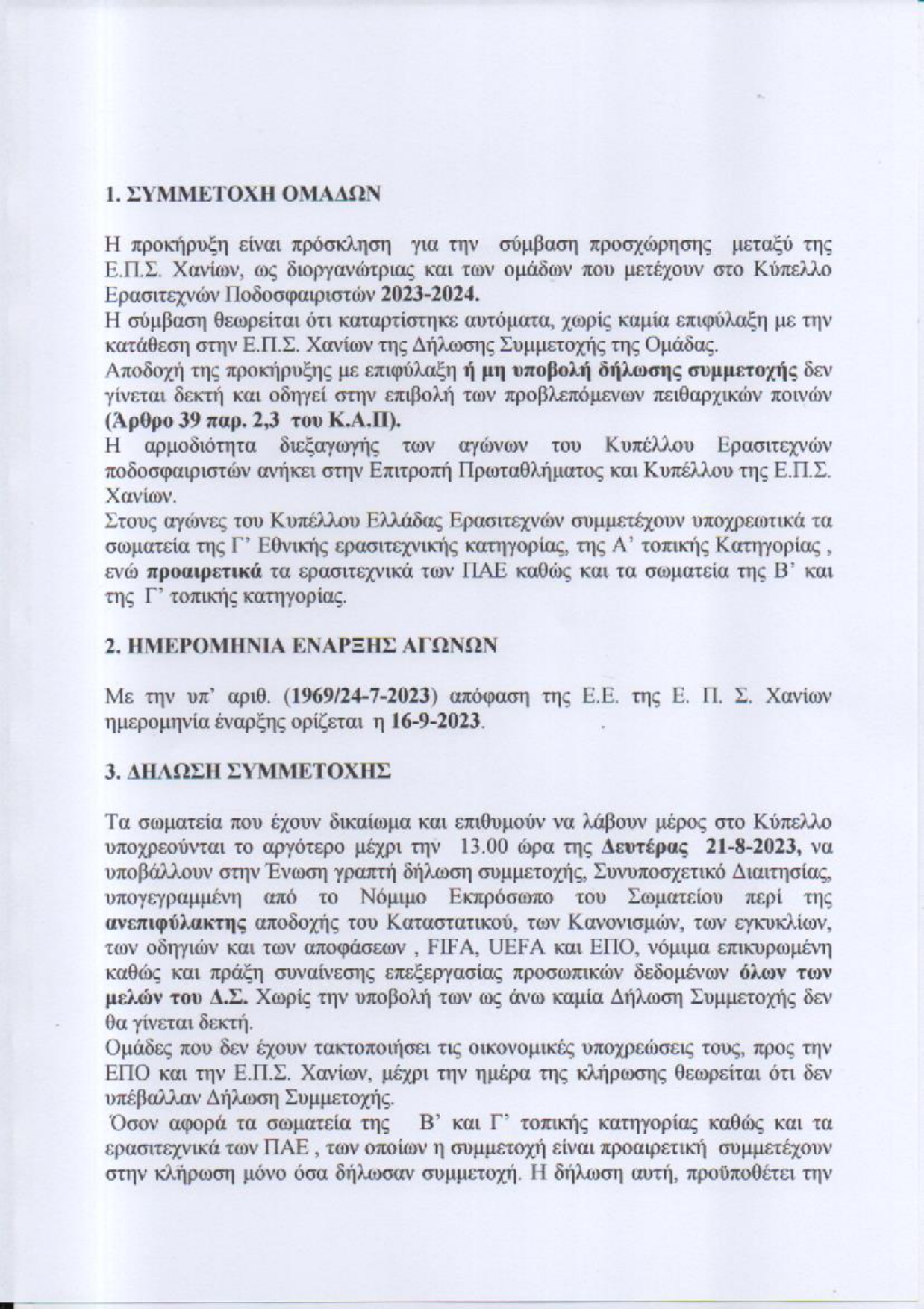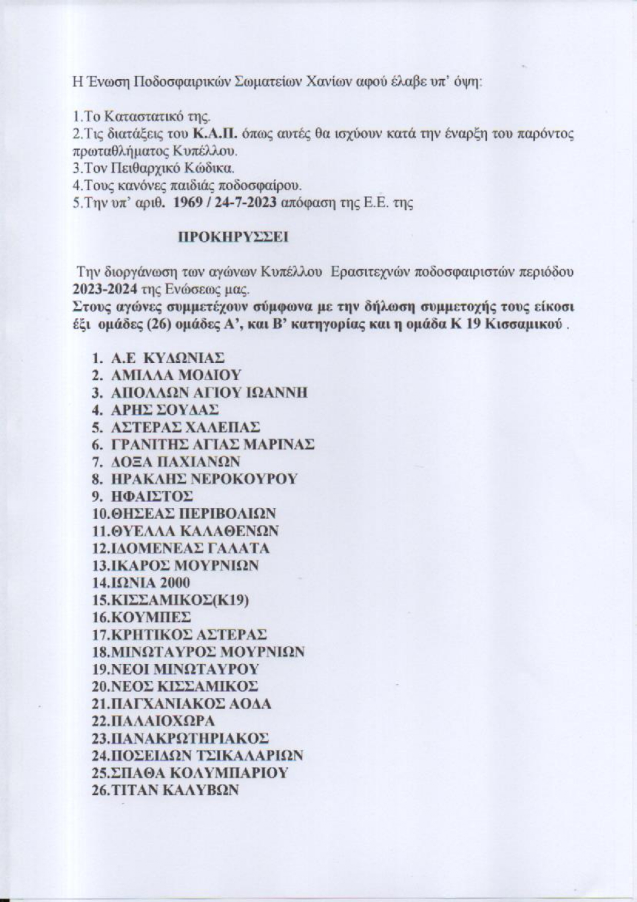 Αυτή είναι η προκήρυξη του Κυπέλλου Χανίων 2023-24
