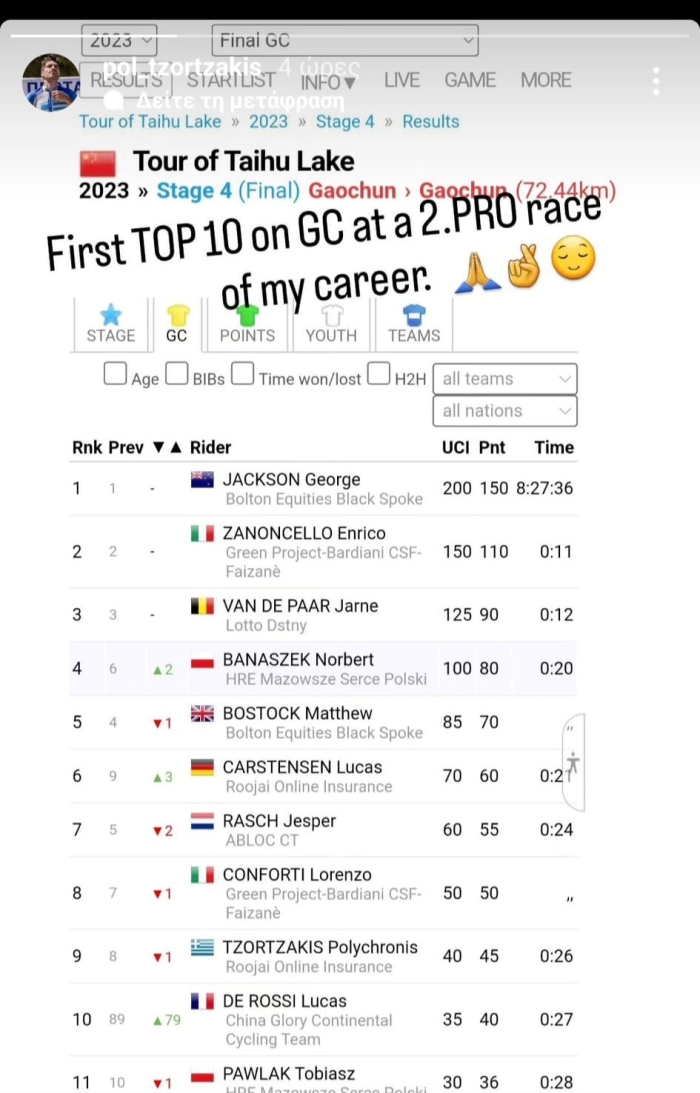 Σημαντική διάκριση για τον Χανιώτη ποδηλάτη Πολυχρόνη Τζωρτζάκη, ο οποίος τερμάτισε στην 9η θέση της γενικής κατάταξης στο Tour of Taihu Lake της Κίνας.