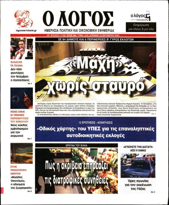 Τα πολιτικά πρωτοσέλιδα της ημέρας(15/10)