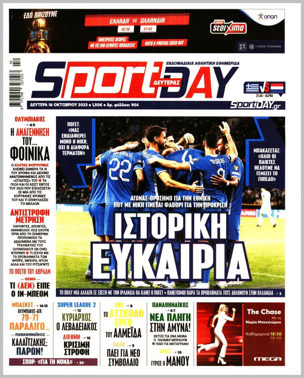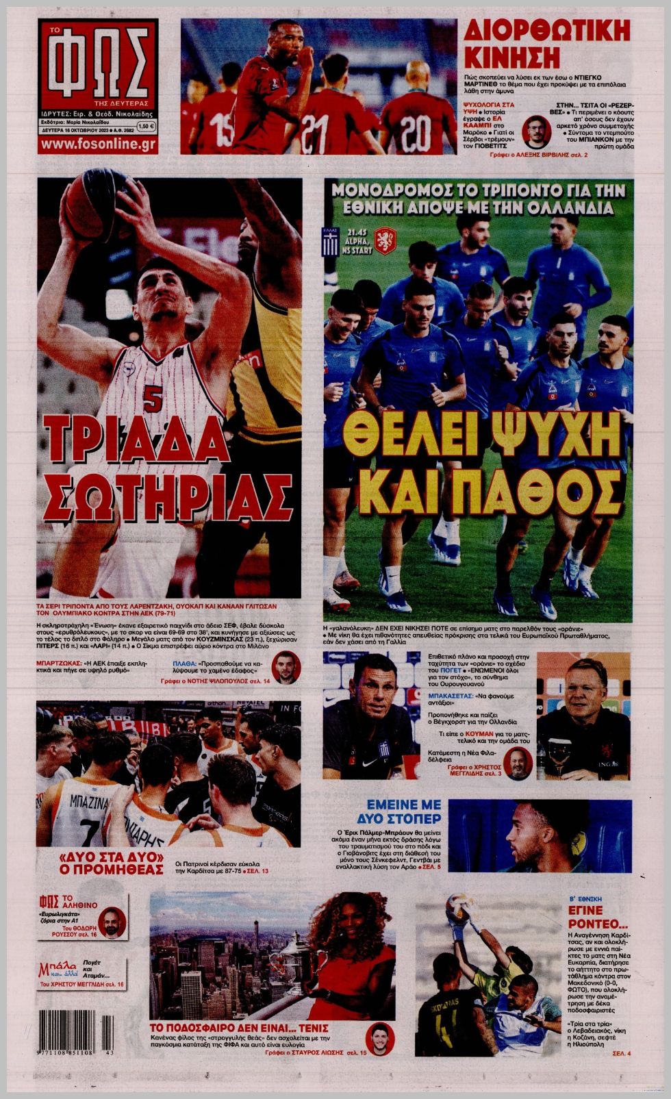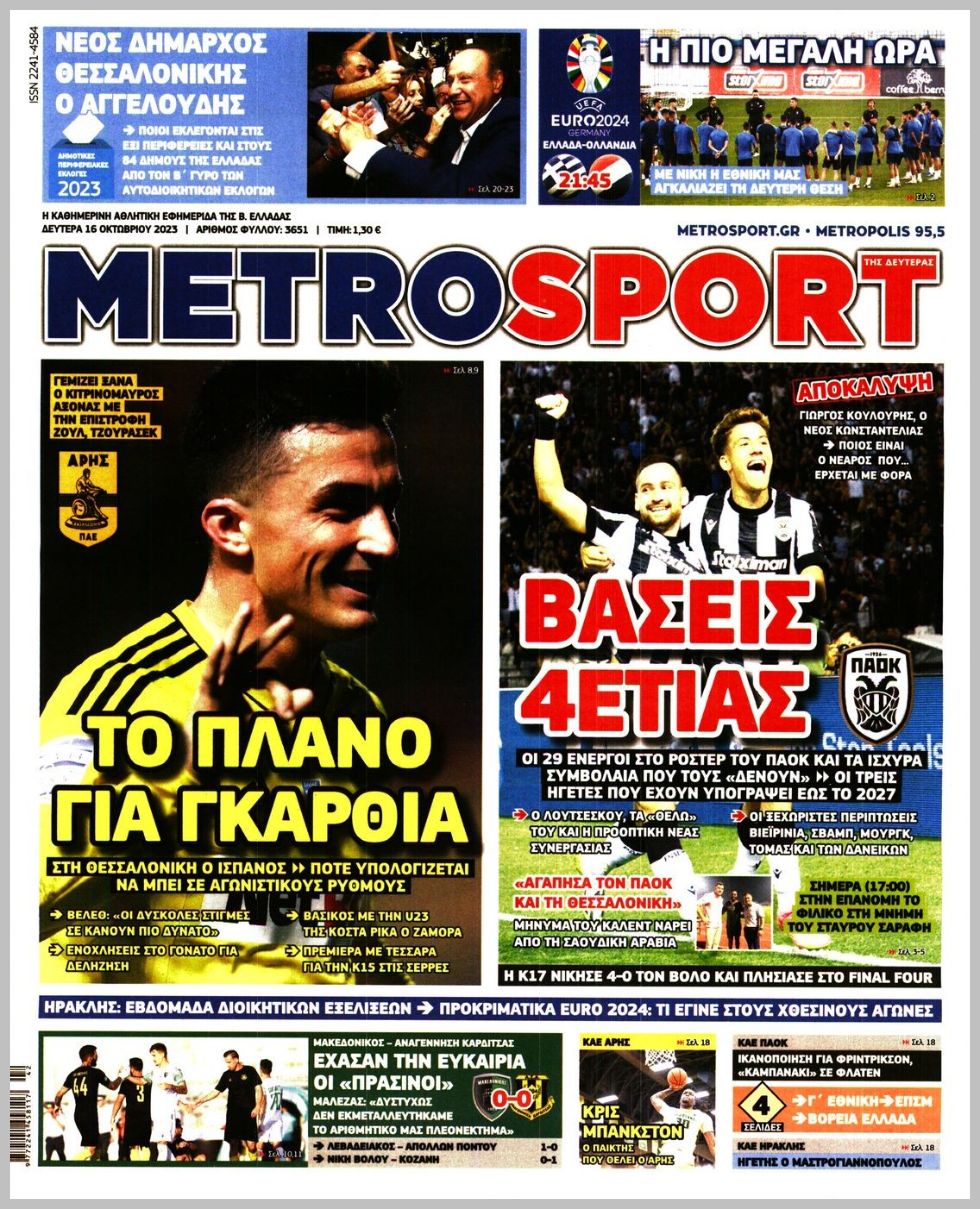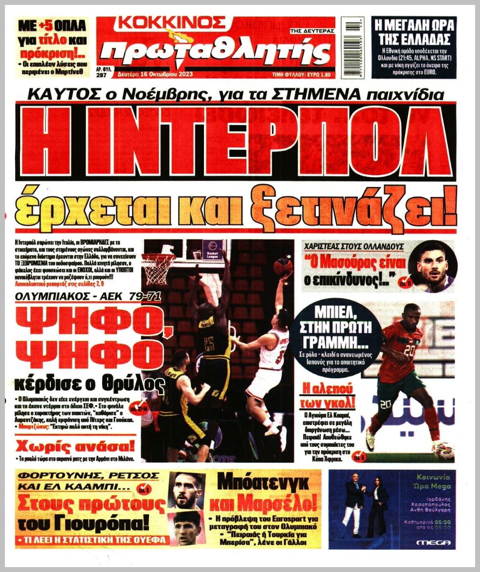 Τα αθλητικά πρωτοσέλιδα της Δευτέρας (16/10)