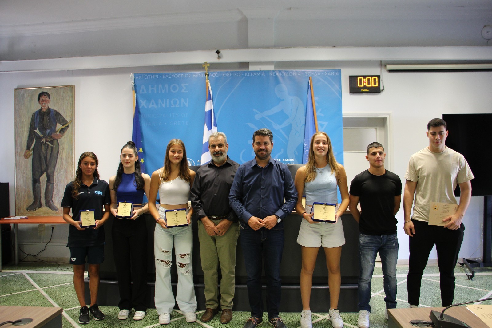 Τους Χανιώτες αθλητές και αθλήτριες, που πέτυχαν διακρίσεις σε πανελλαδικό, και πανευρωπαϊκό επίπεδο για το έτος 2023, βράβευσε την Τρίτη το πρωί ο Δήμαρχος Χανίων, Παναγιώτης Σημανδηράκης.