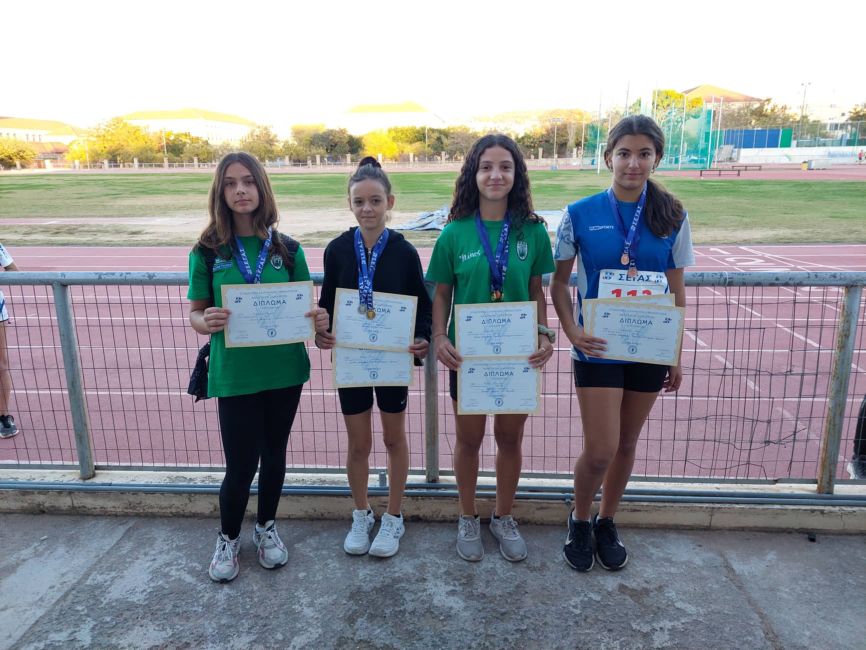 Στα κορίτσια οι συμμετοχές έφτασαν τις 65 με την Σταματίνα Τριανταφύλλου (Α.Ο. Κύδων) να αναδεικνύεται νικήτρια με 300μ. (9.70, 1.30μ., 5.17μ.). Δεύτερη ήταν η Ερσίλντα Κατέσι (ΑΠΚ Θύελλα) με 275β. (11.60, 1.40μ., 4.38μ.) και τρίτη η Μαρία Κανελάκη (Α.Ο. Κύδων) με 270β. (10.30, 1.20μ., 4.68μ.).