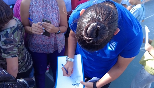 Τα παιδιά υποδέχθηκαν με ενθουσιασμό τις διεθνείς παίκτριες και ιδιαίτερα στο Δημοτικό σχολείο κυριολεκτικά δεν τις άφηναν να φύγουν!