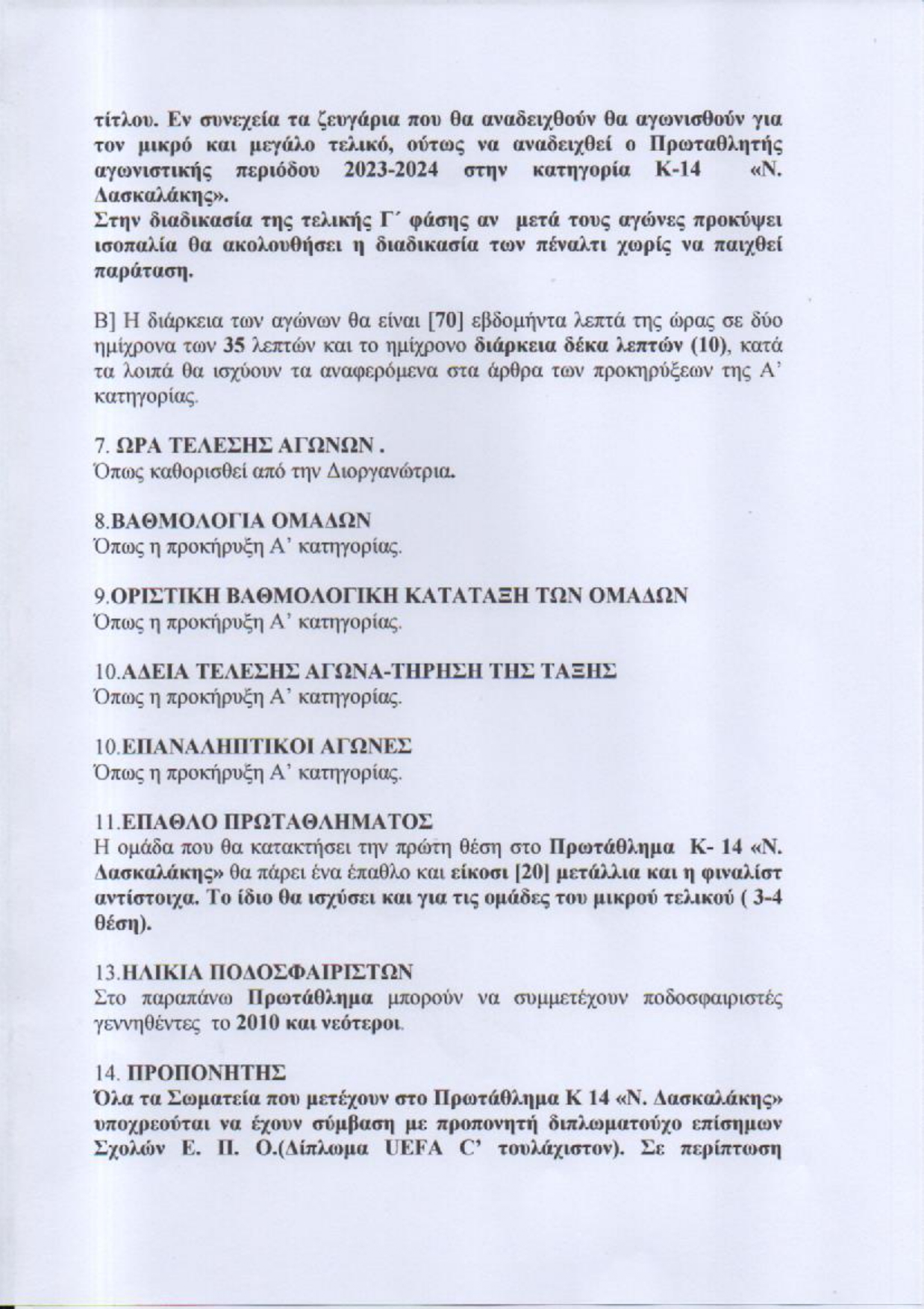Σε δυο ομίλους τα Κ14 και στη συνέχεια όμιλος τίτλου και κατάταξης