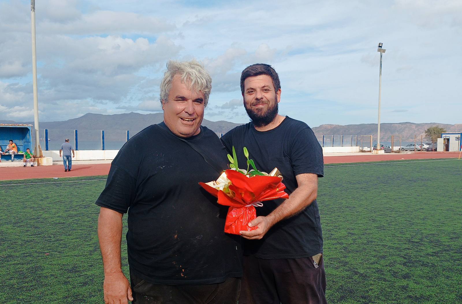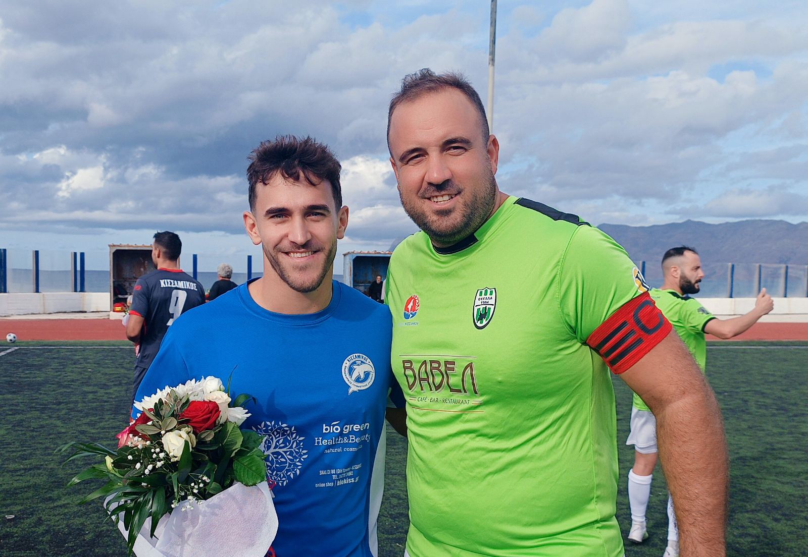 Φυσικά δεν γινόταν η Θύελλα να τους ξεχάσει και πριν από την σέντρα του αγώνα τους πρόσφερε από μια ανθοδέσμη, πιο συγκεκριμένα τον Γιάννη Λουβιτάκη τίμησε ο Στέφανος Μαργαριτάκης ενώ τον Γιάννη ο έτερος Λουβιτάκης ο Σπύρος ο οποίος παρέμεινε στις Καλάθενες.