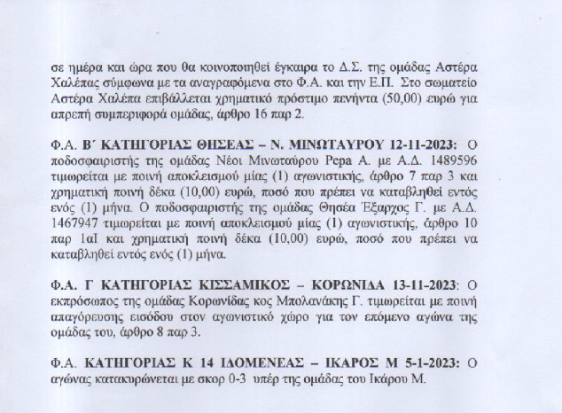 Δείτε το ποινολόγιο της ΕΠΣ Χανίων για την εβδομάδα που μας πέρασε.