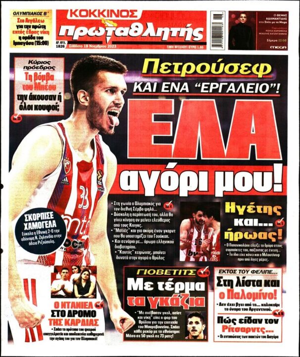 Τα αθλητικά πρωτοσέλιδα της ημέρας(18/11)