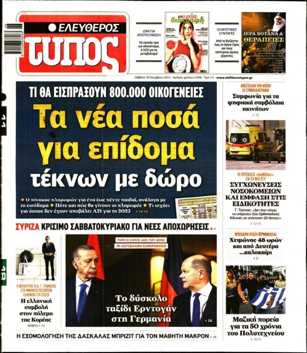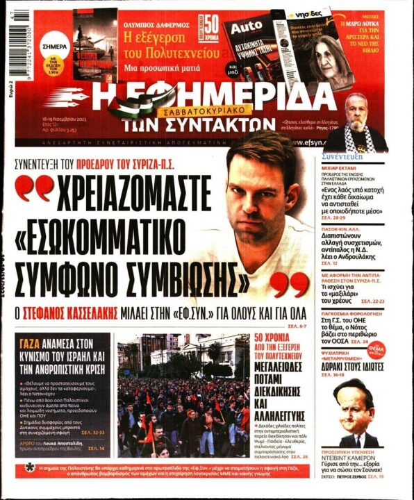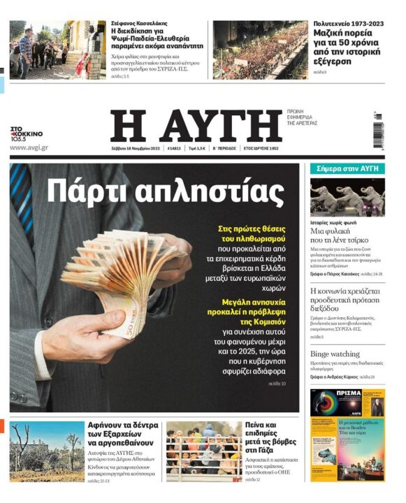 Τα πολιτικά πρωτοσέλιδα της ημέρας(18/11)