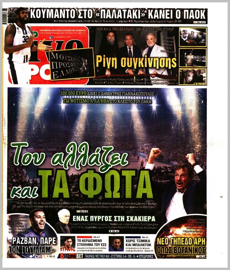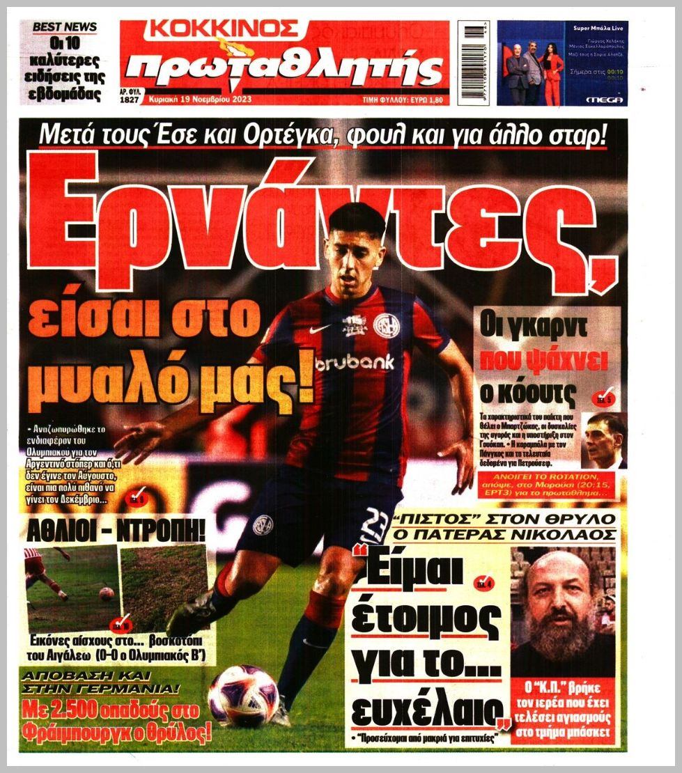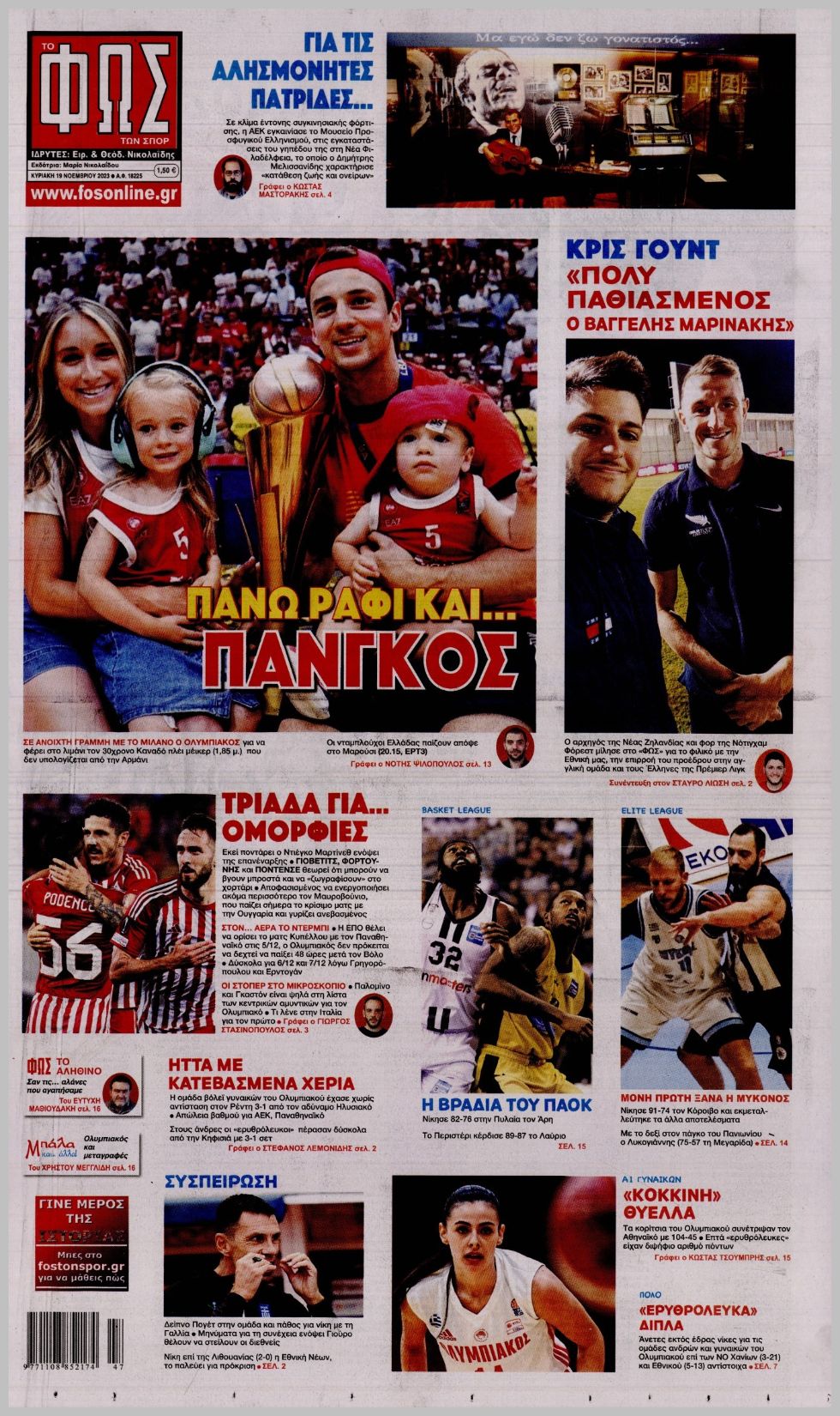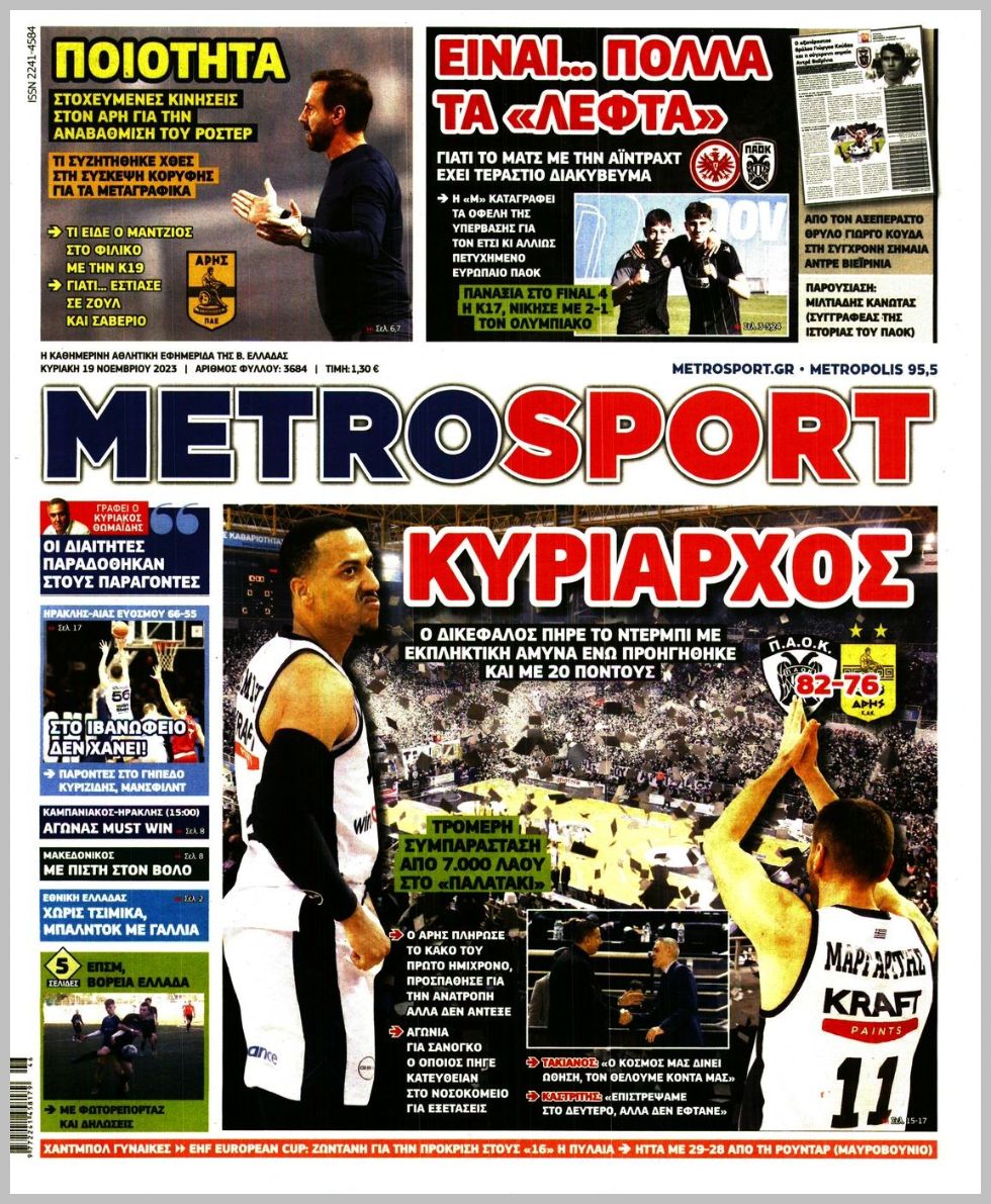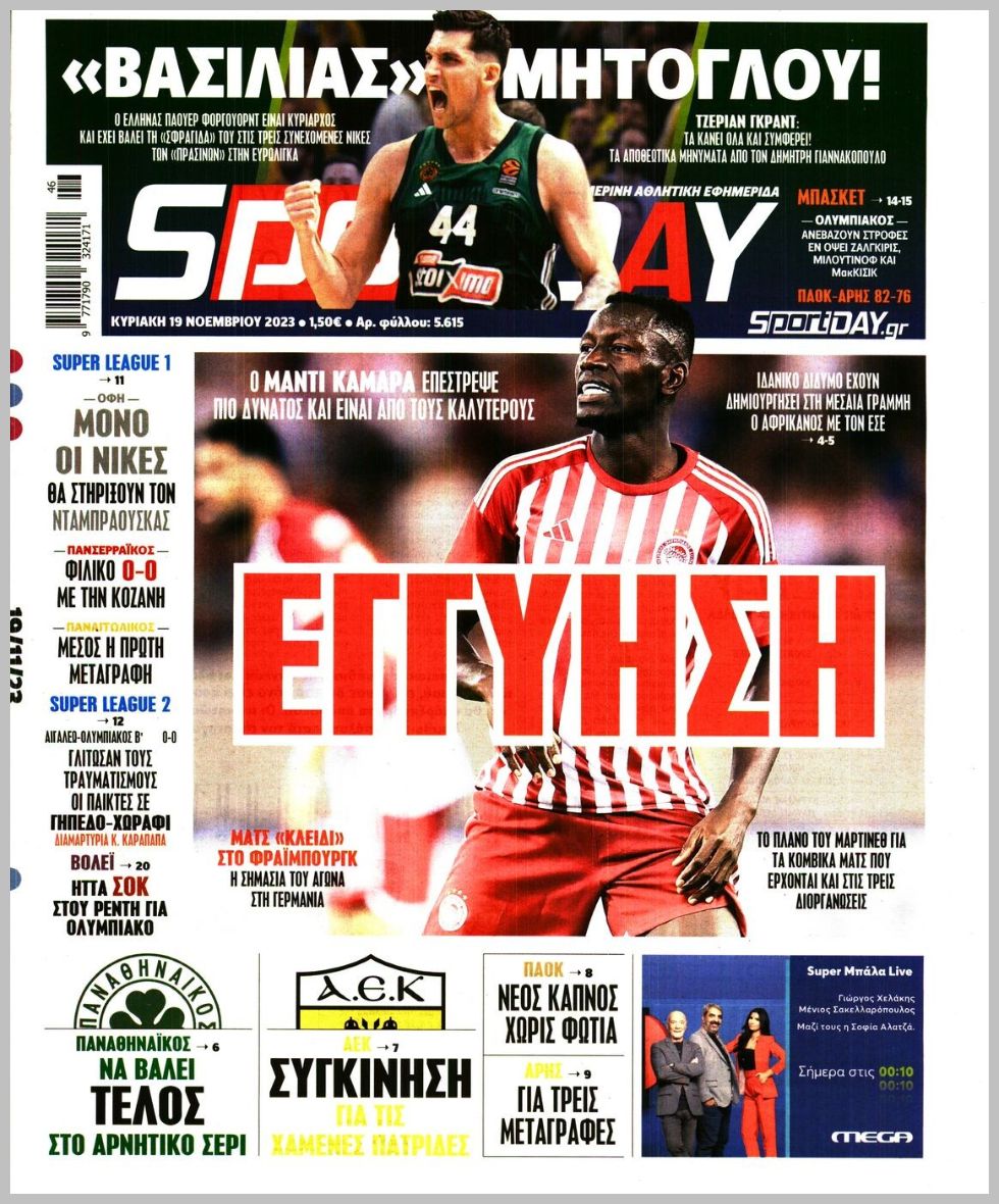 Τα αθλητικά πρωτοσέλιδα της Κυριακής (19/11)