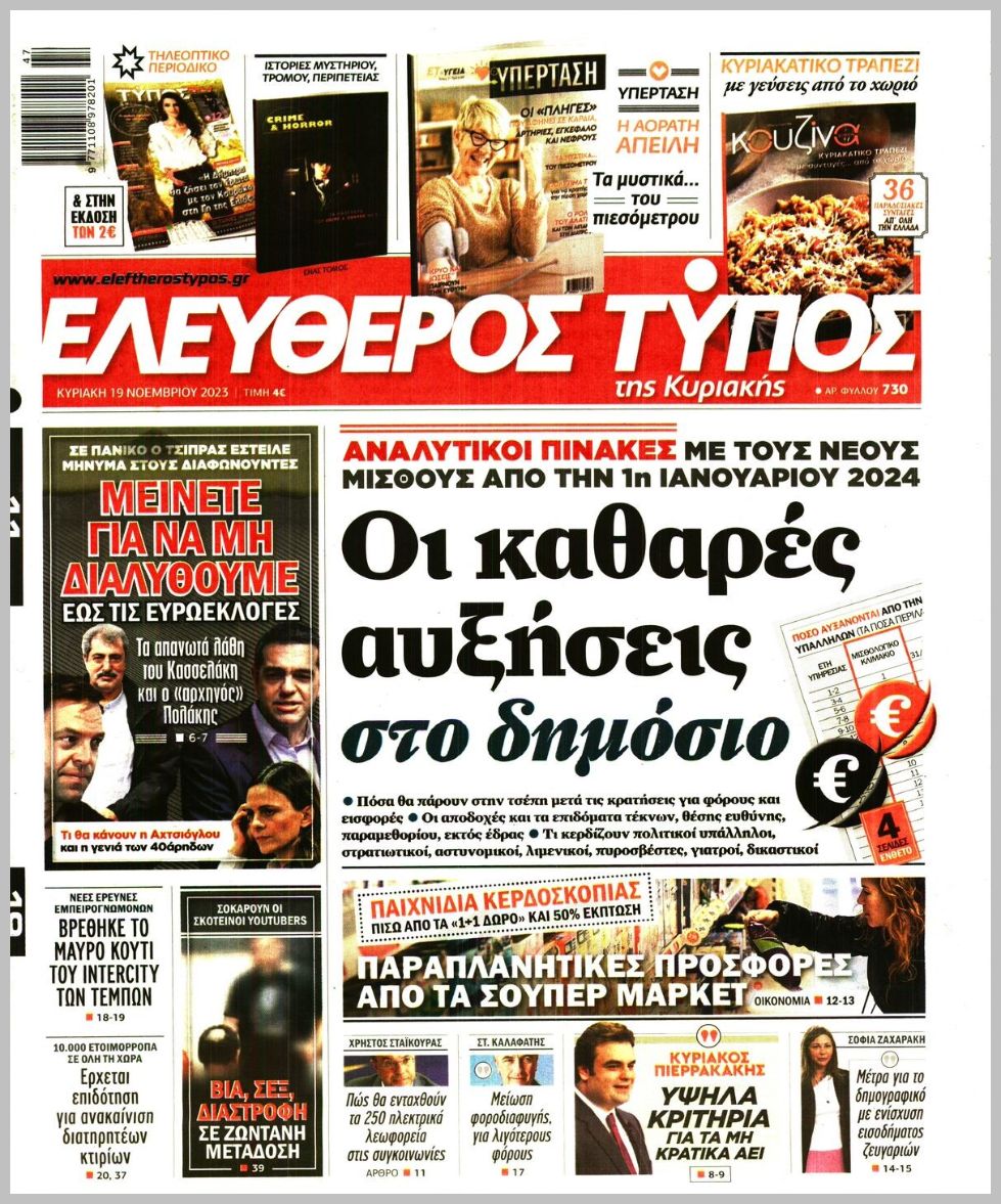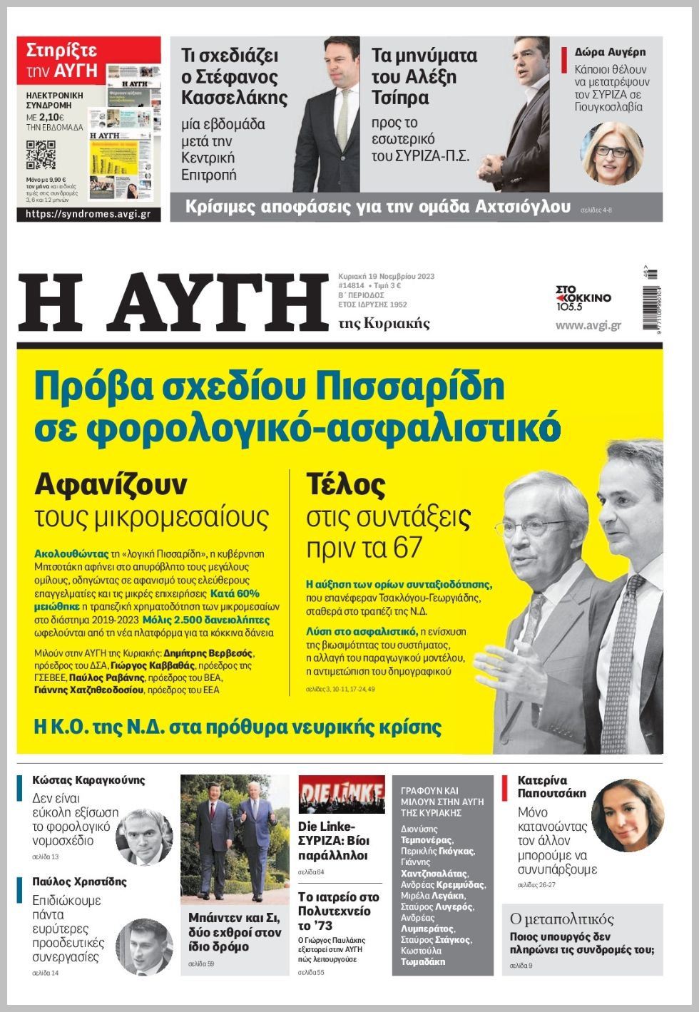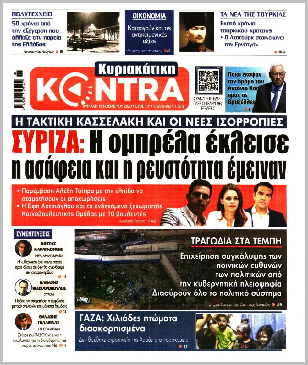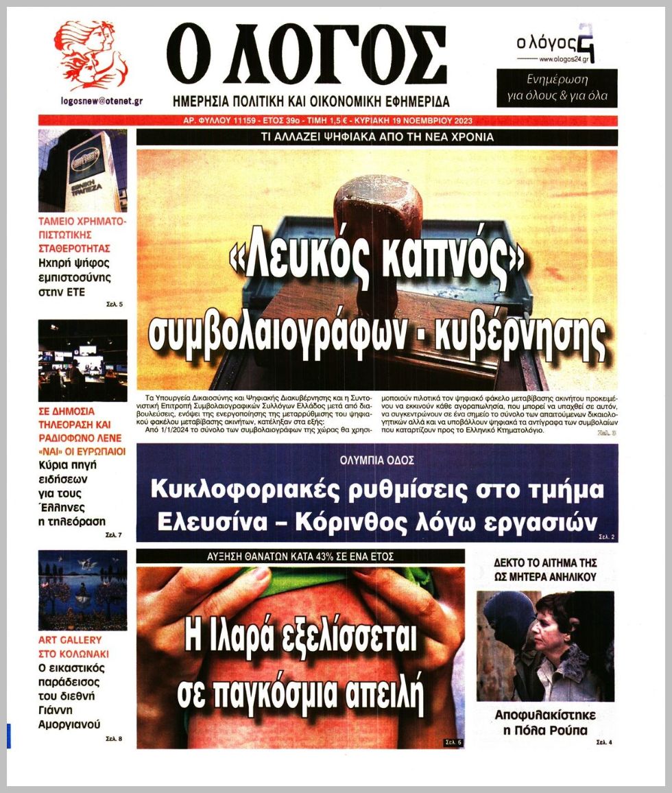 Τα πρωτοσέλιδα των πολιτικών εφημερίδων της Κυριακής (19/11)