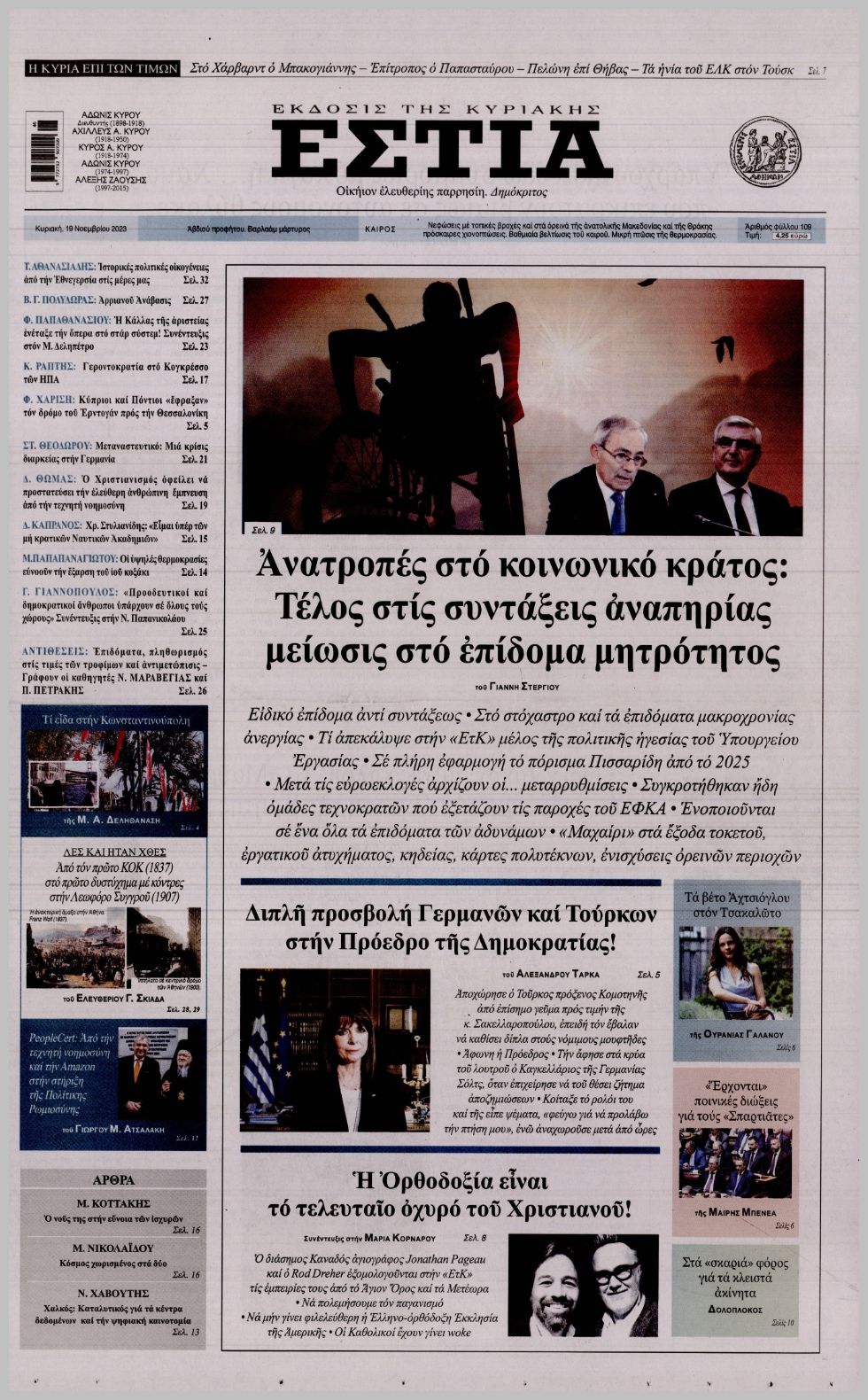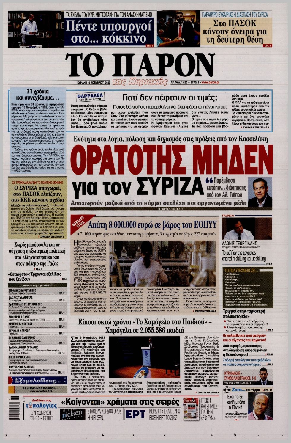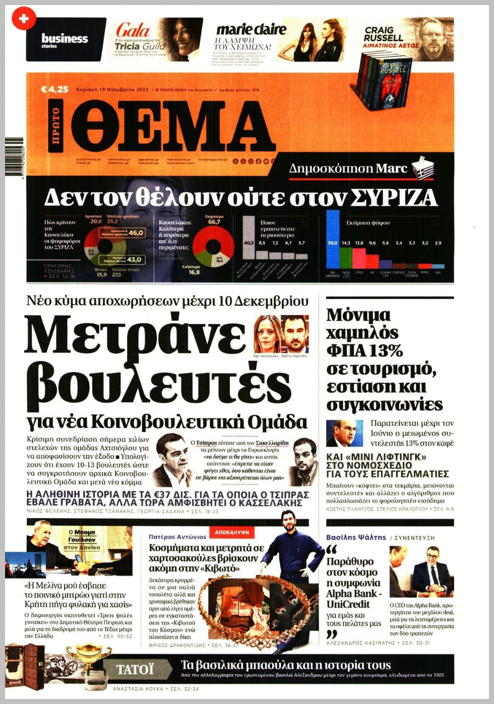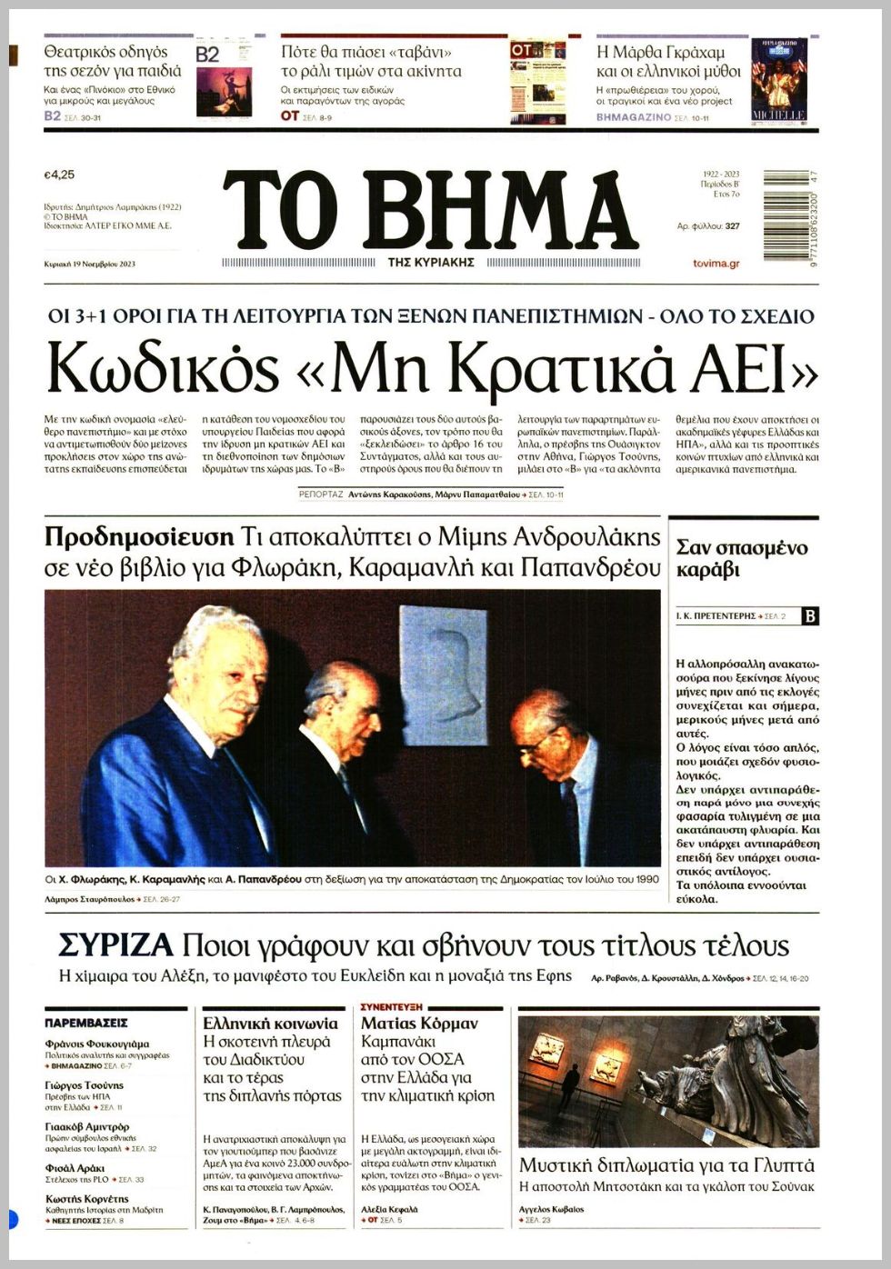 Τα πρωτοσέλιδα των πολιτικών εφημερίδων της Κυριακής (19/11)